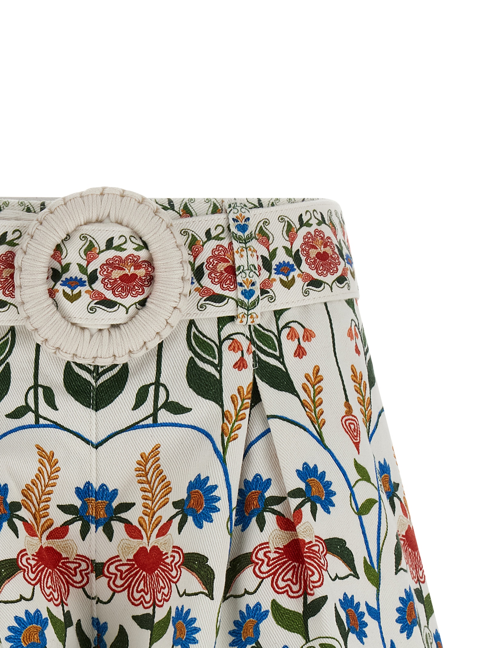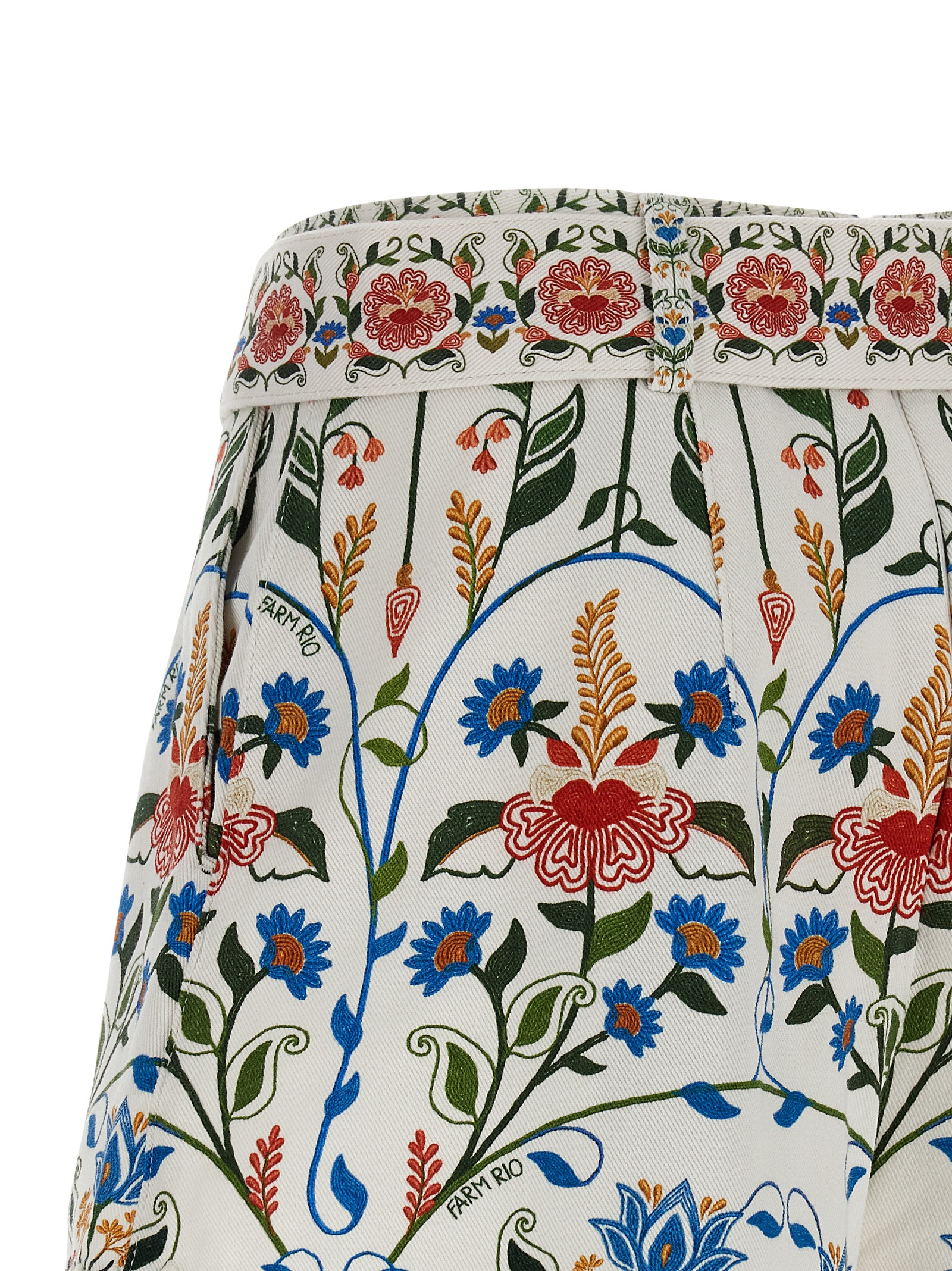 'Fraga' shorts in all-over floral print cotton canvas, front pinces, wide leg, high waist, back zip closure, pockets, embroidery on the leg bottom, removable matching belt.