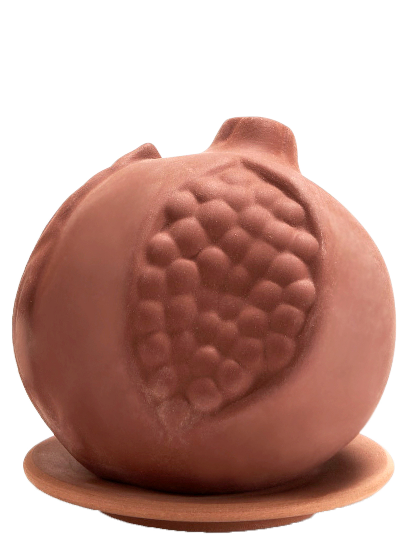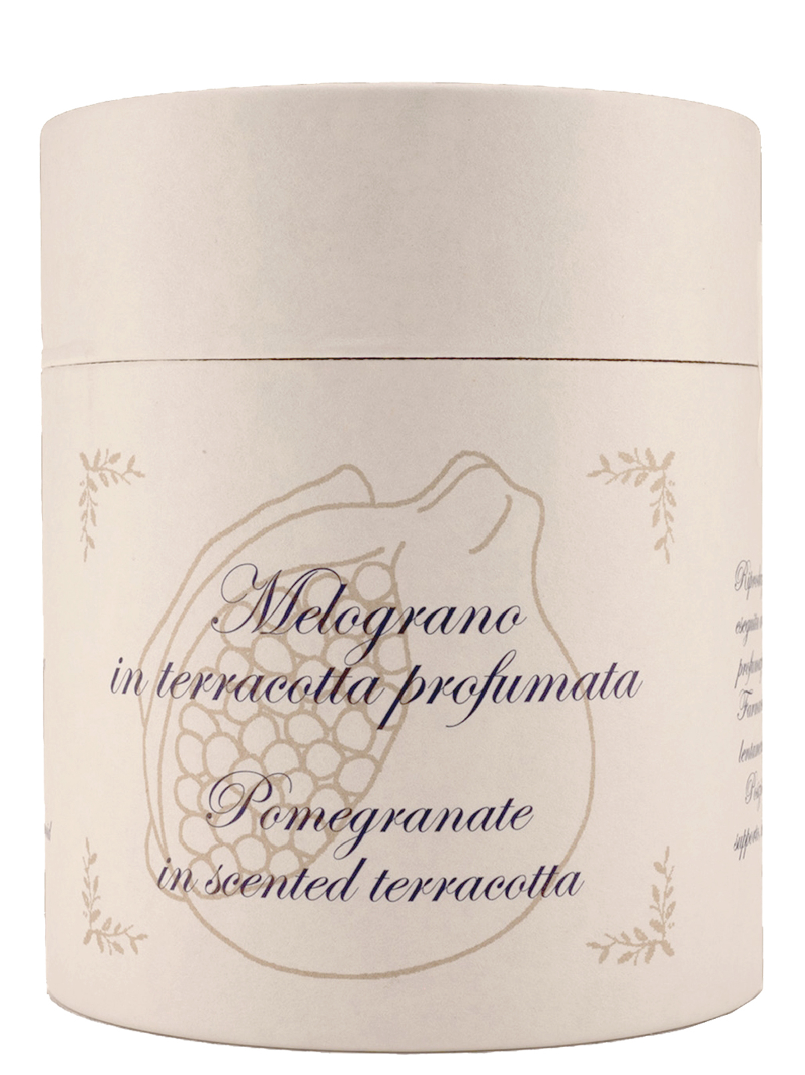 Terracotta reproduction of the pomegranate fruit, handcrafted. The object, soaked in the Pomegranate fragrance of the Officina Profumo-Farmaceutica di Santa Maria Novella, slowly releases the particular fragrance into the environment.