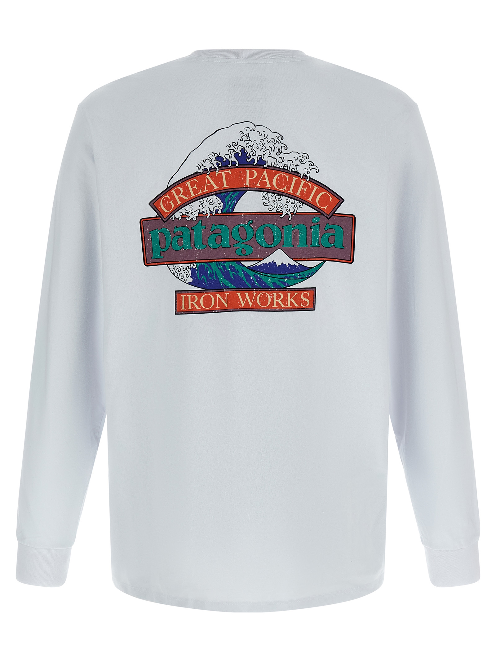 Мужская футболка с длинными рукавами «Great Waves Responsibili-Tee®» из прочного хлопкового трикотажа с принтом спереди и сзади, круглым вырезом, длинными рукавами с манжетами и приспущенными плечами. ЭКОЛОГИЧНОСТЬ: Изделие изготовлено из переработанных материалов. ЭКОЛОГИЧНОСТЬ: Изделие упаковано на предприятии, сертифицированном по стандартам справедливой торговли (Fair Trade Certified™): эта сертификация означает, что Patagonia выплатила денежную премию работникам, которые произвели этот продукт.