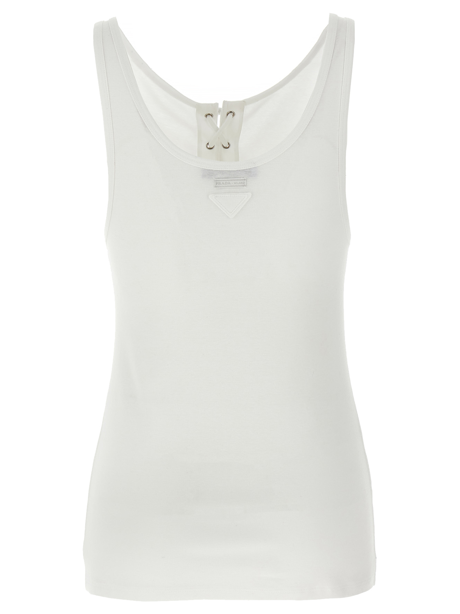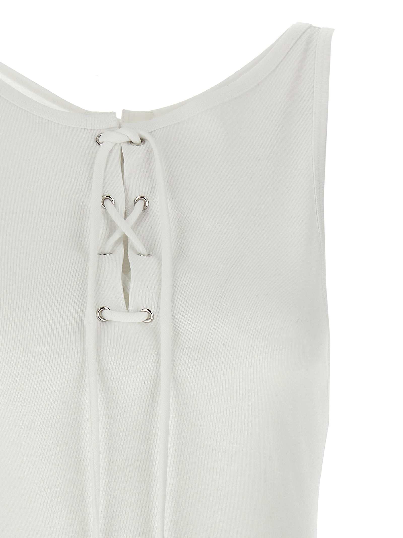 Ribbed cotton tank top with front lace detail, and asymmetric neckline.