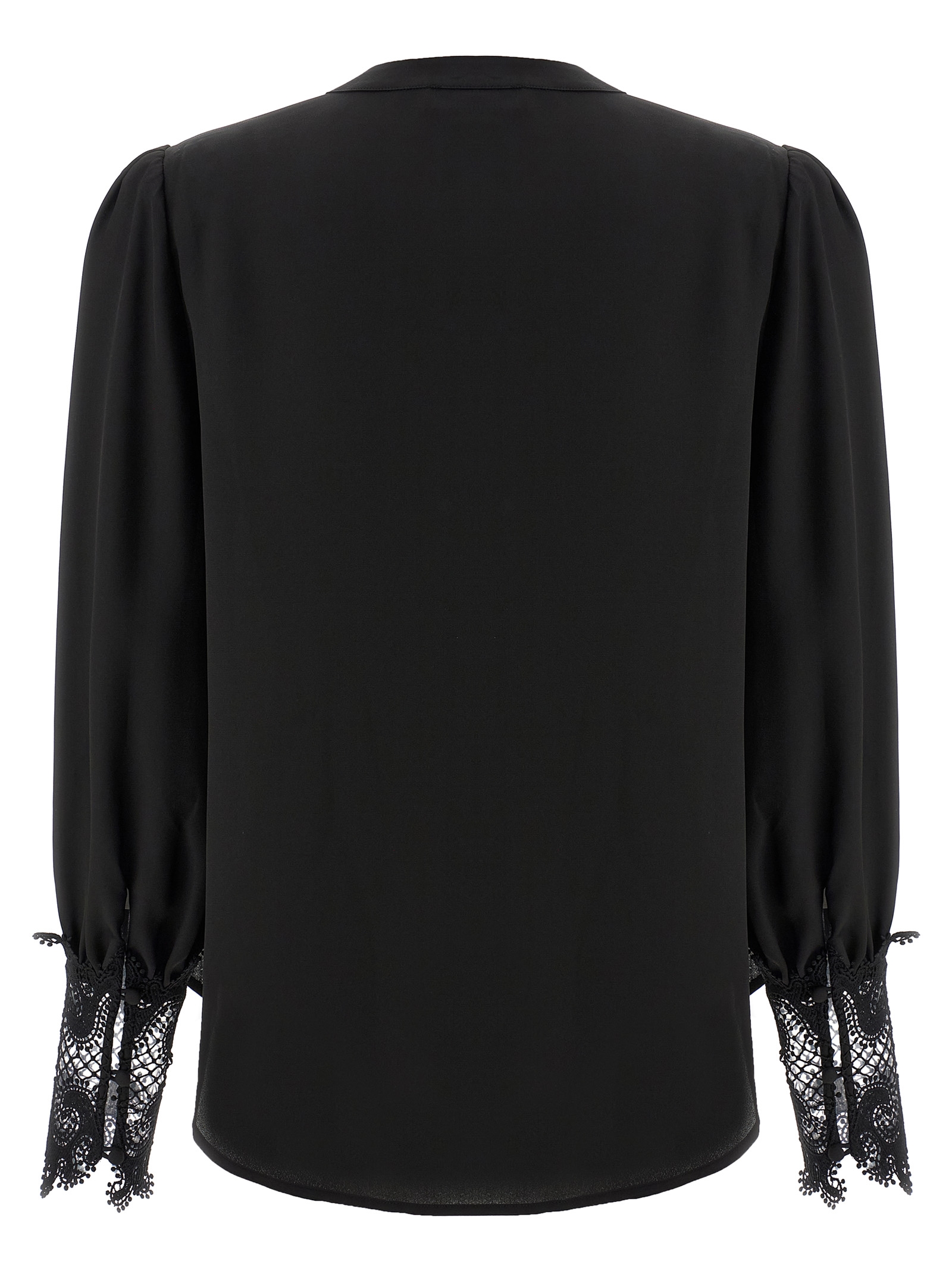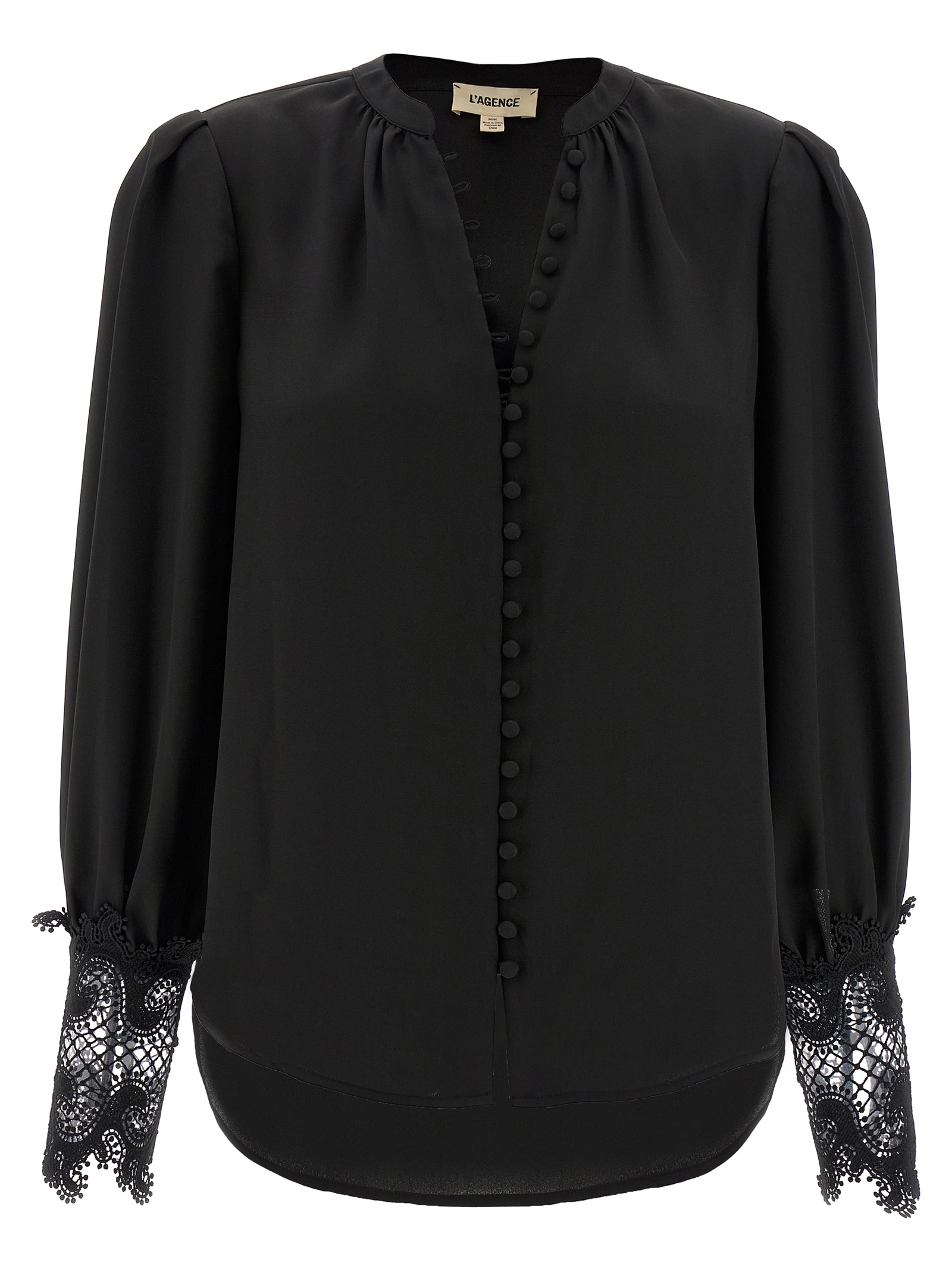 'Ava' cady shirt, high neck, front button closure, long sleeves with elongated ruffled guipure lace cuffs and a slightly puff shoulder.Характеристики товара