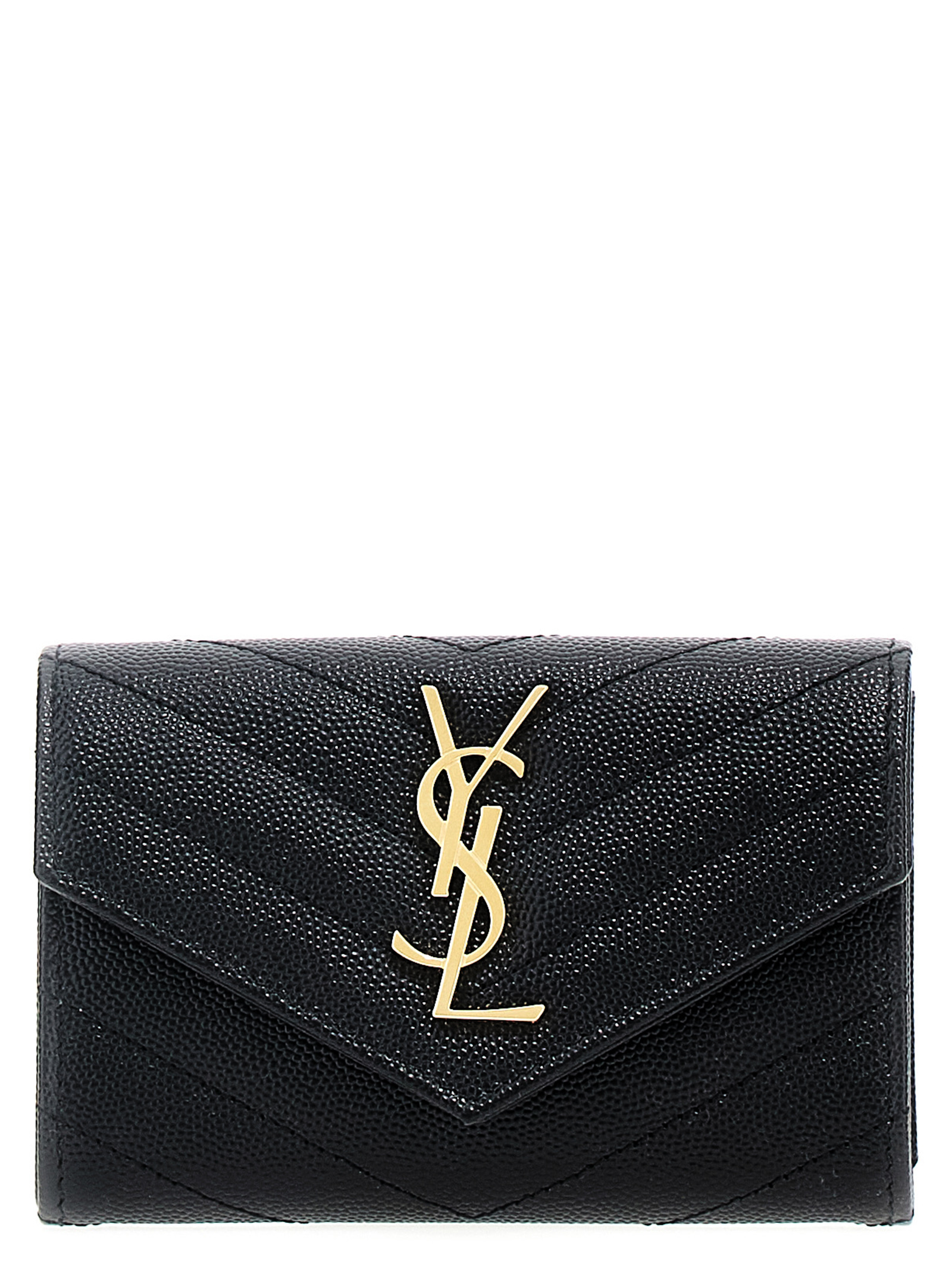 Небольшой кошелек-конверт из стеганой кожи Grain de Poudre с клапаном и золотым монограммным логотипом.Характеристики товара