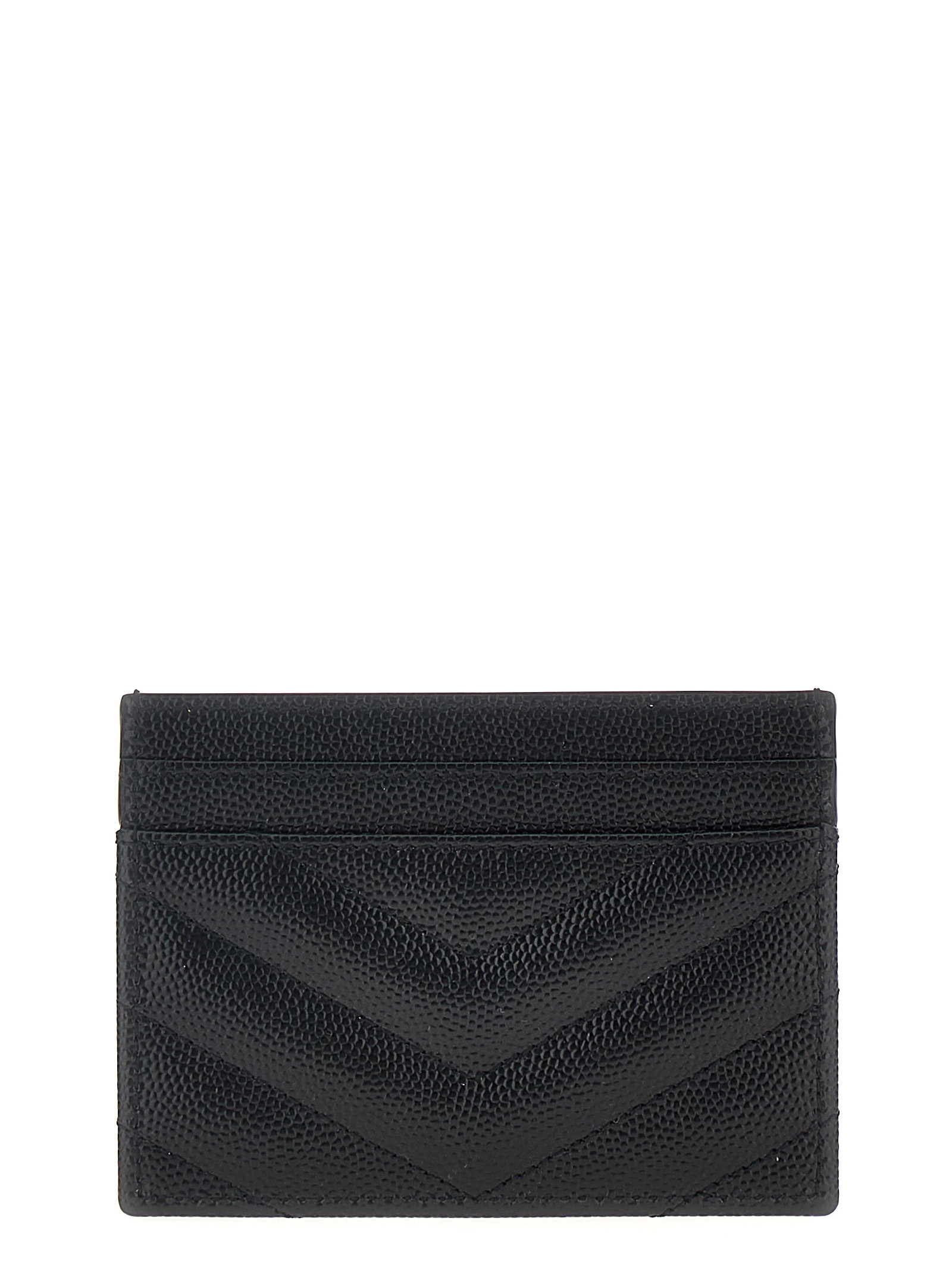 Saint Laurent grainy matelassé leather card holder with metal gold logo.