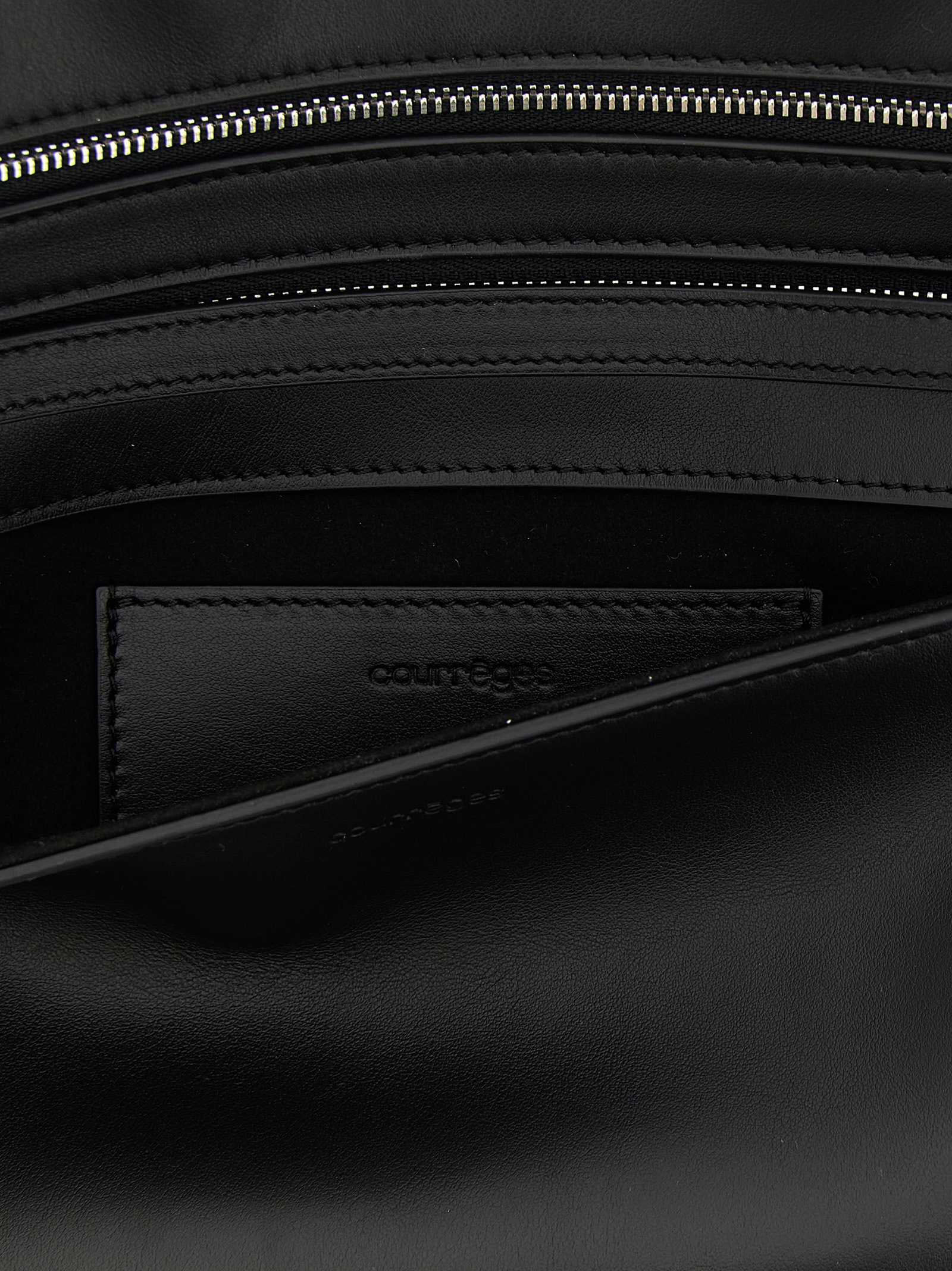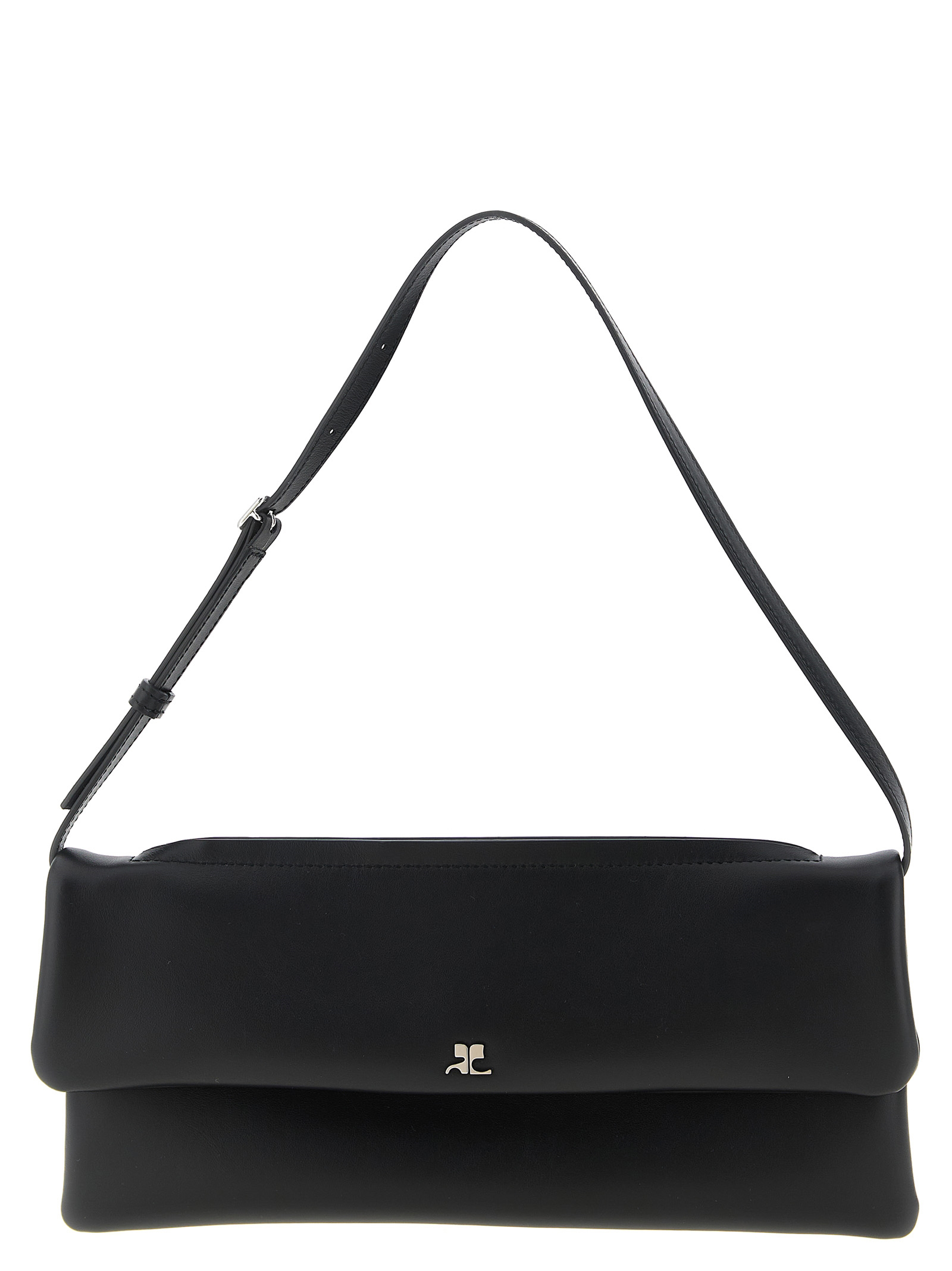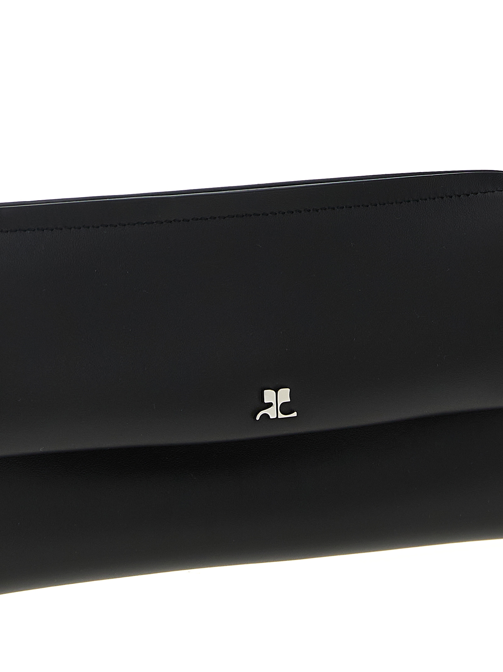 Smooth calf leather wrist clutch, magnetic flap closure with front metal AC logo, top zip to open to insert the wrist, adjustable and removable handle. It can be worn as a clutch bag or on the shoulder.