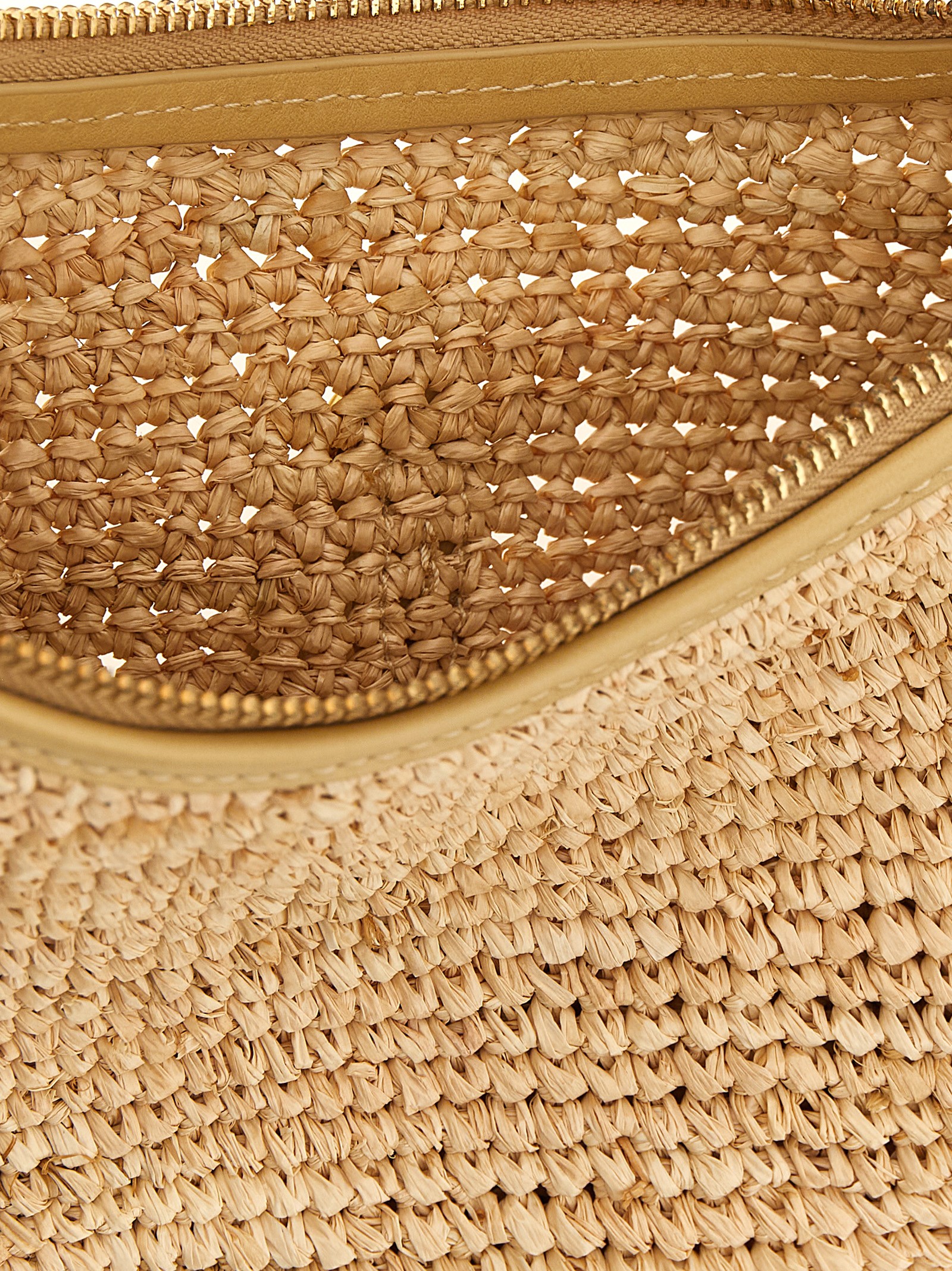 Polo ID' raffia shoulder bag with saddle silhouette, zip closure, leather Hutton buckle detail with perforated logo, fixed leather handle, leather details
