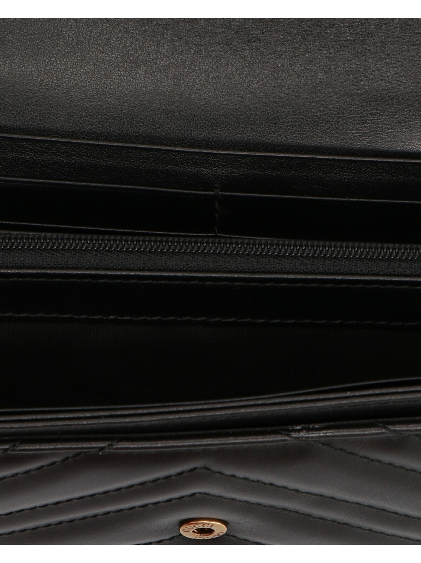 Кошелек Continental GG Marmont из черной стеганой кожи с шевронным узором и буквами GG на задней стороне, отделкой под старинное золото, двойной буквой G, двенадцатью отделениями для карт и двумя отделениями для банкнот, двумя отдельными внутренними отделениями, карманом для монет на молнии и автоматической застежкой.Характеристики товара