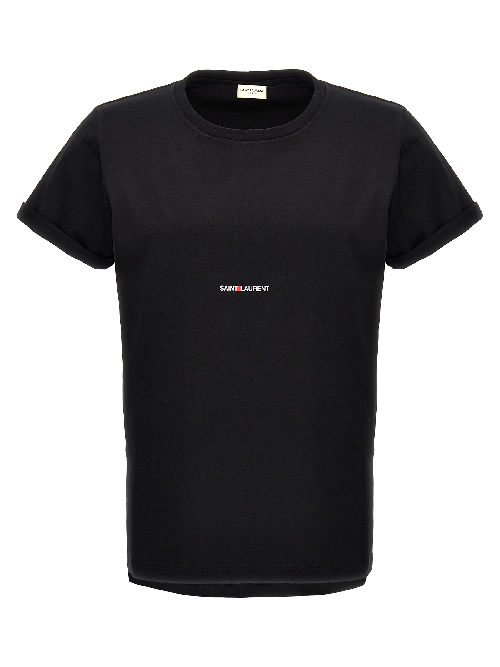 'Saint Laurent rive gauche' cotton, crewneck t-shirt with front logo print.