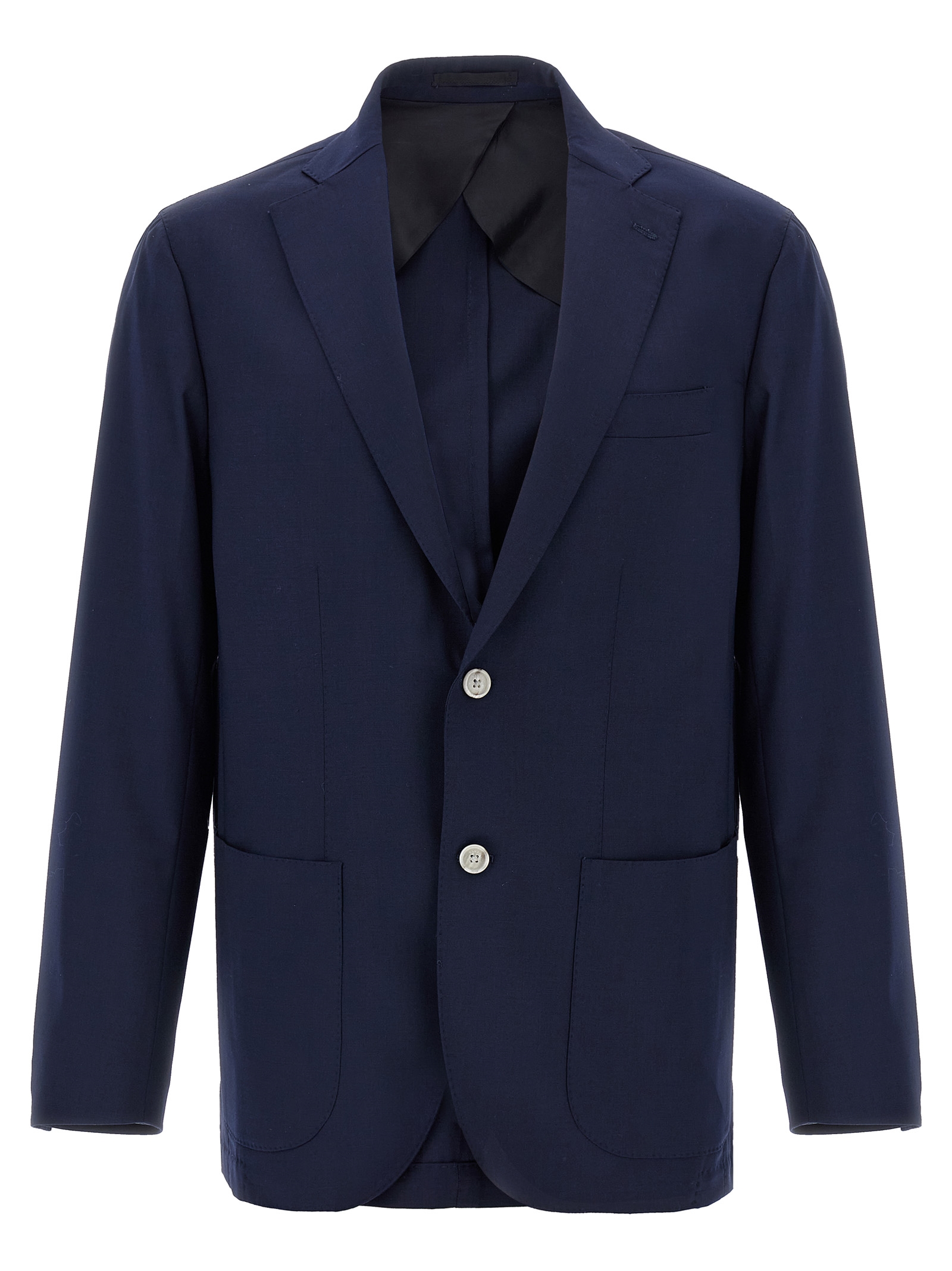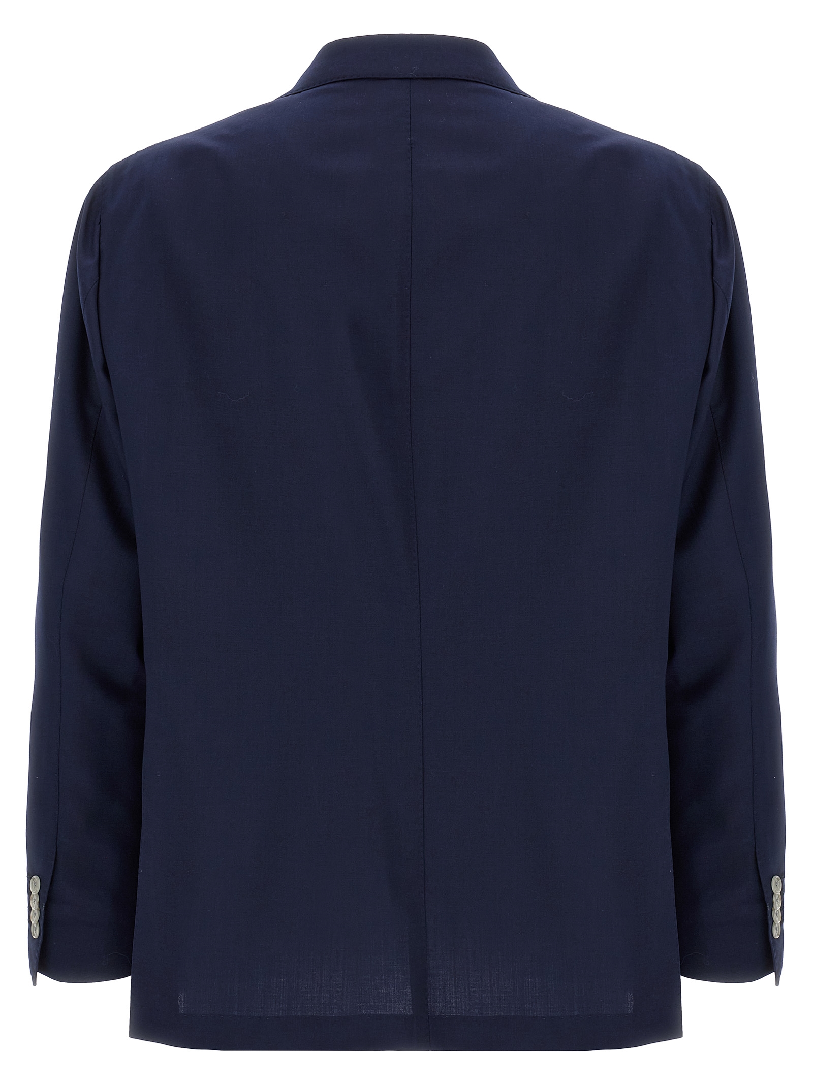 'Jim2' single-breasted wool blend blazer with two-button closure, pockets, unlined, mirror lapels, long sleeves, double back split.