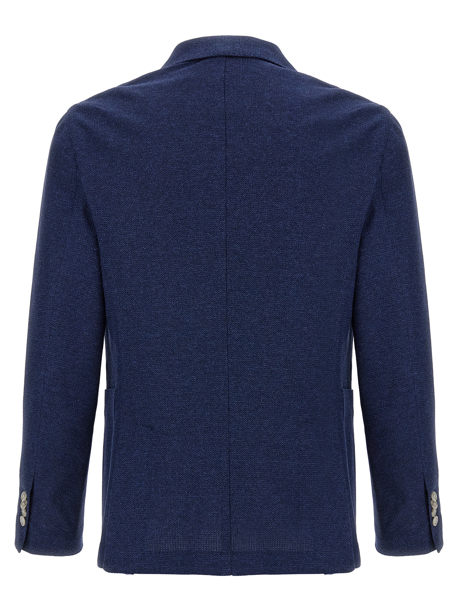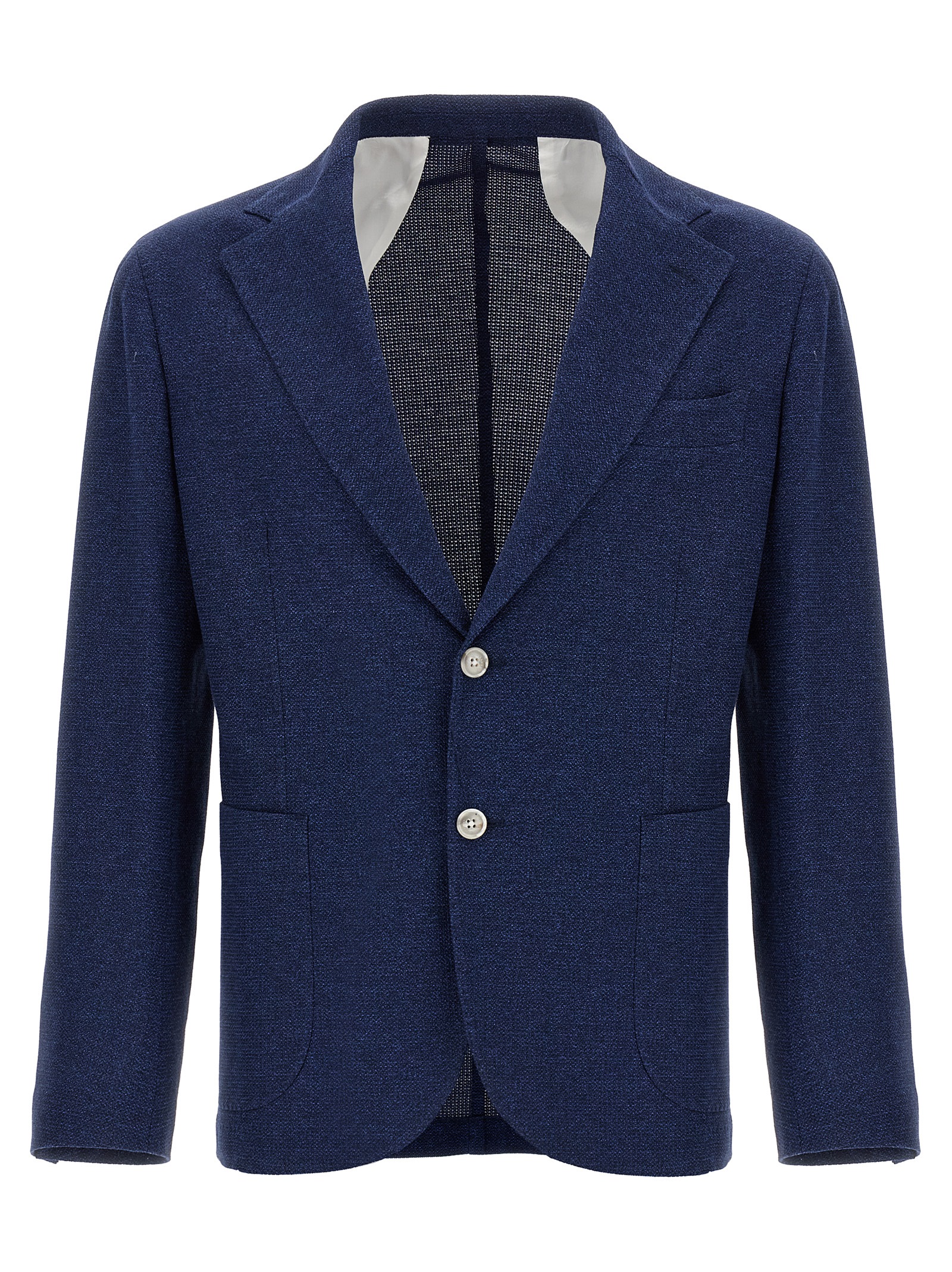 'Dynamic 201' single-breasted unstructured cotton blazer with button closure, mirror lapels, breast pocket, patch pockets, unlined, two inner pockets, cuffs with open buttonholes, back vents.