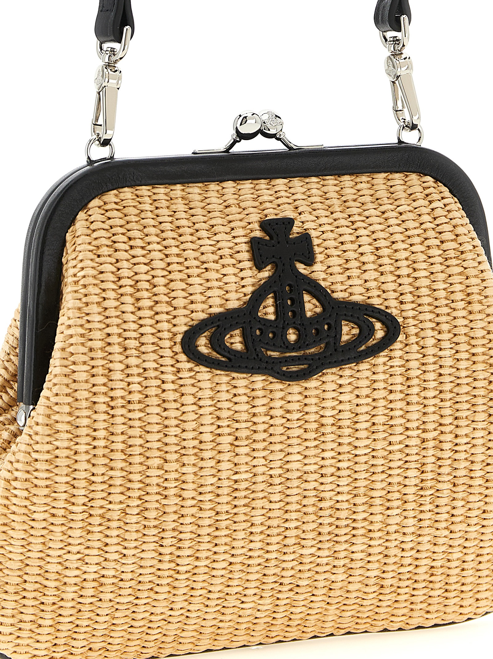 Клатч Vivienne из плетеной рафии с деталями из гладкой кожи, нашивка с логотипом 'Line Orb' спереди, застежка-кнопка, съемная ручка. Изделие ручной работы, любые незначительные дефекты следует рассматривать как отличительные черты.
