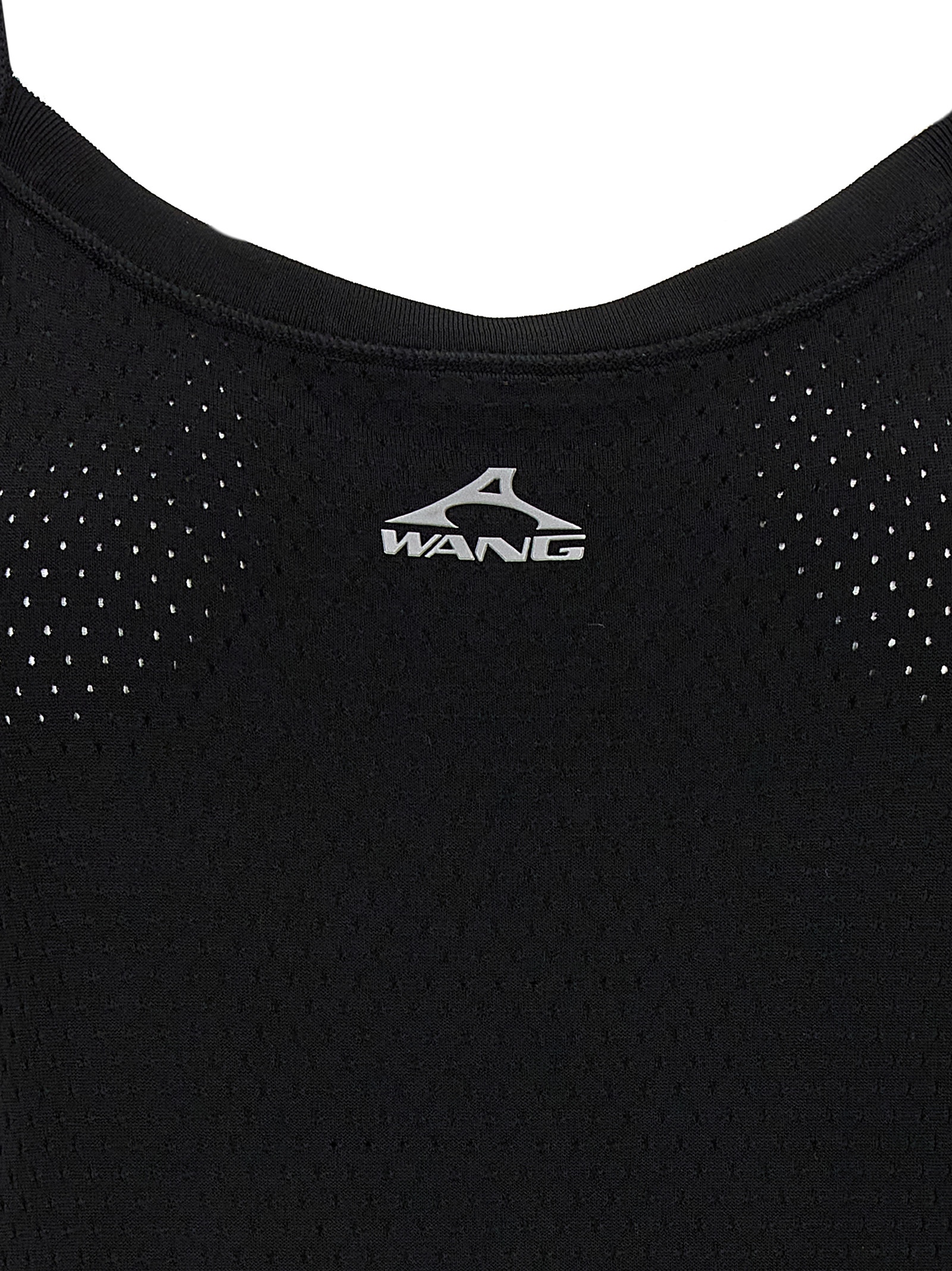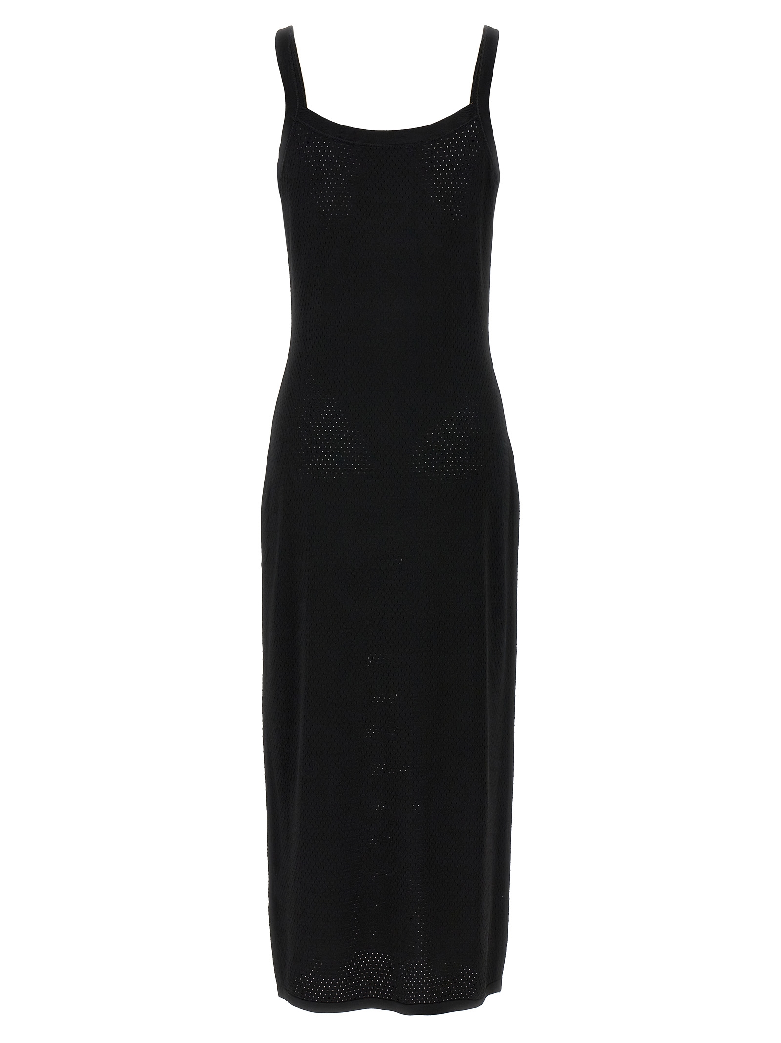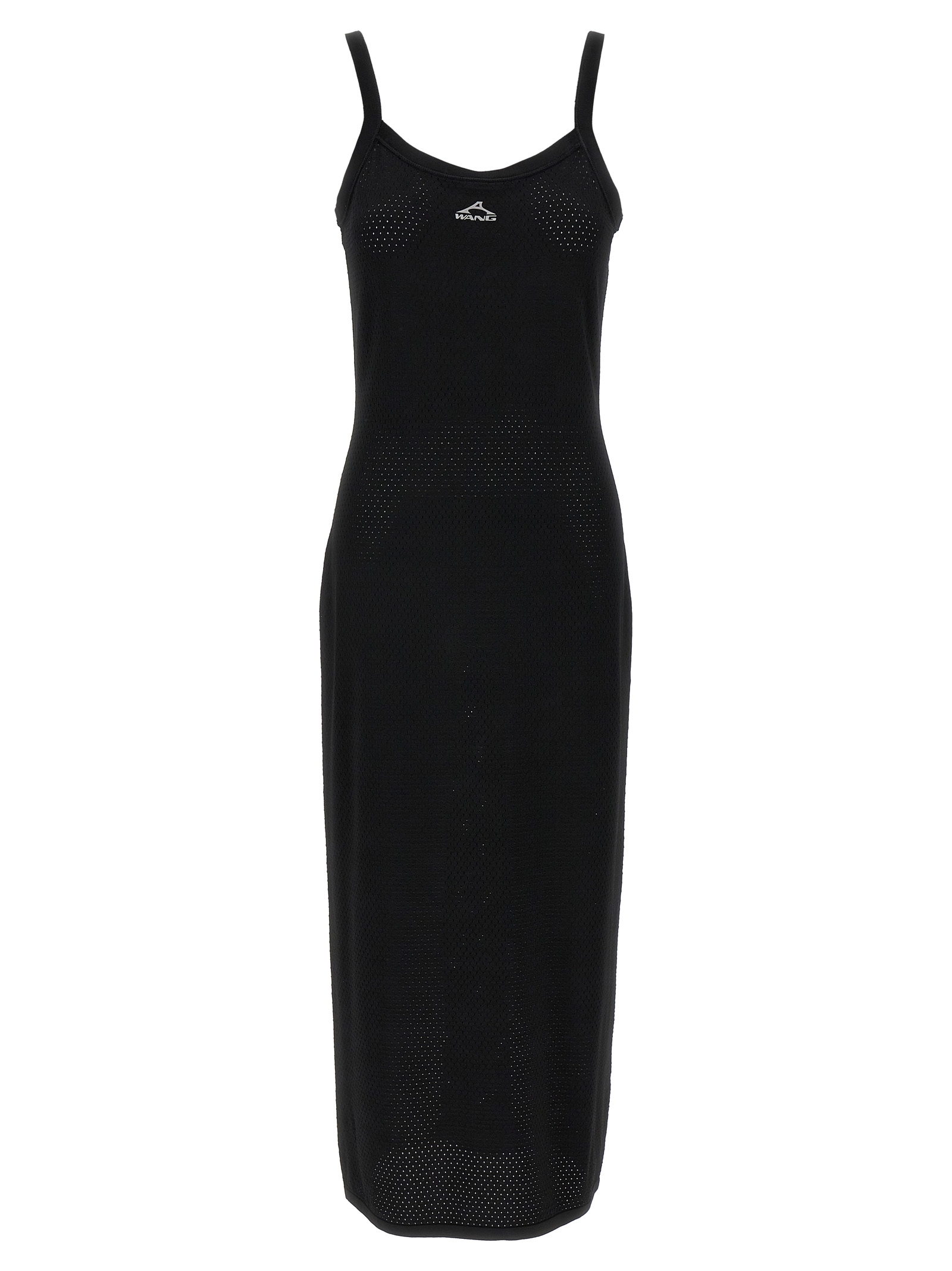 Openwork mesh dress, petticoat with narrow straps, front 3D logo, round neckline.