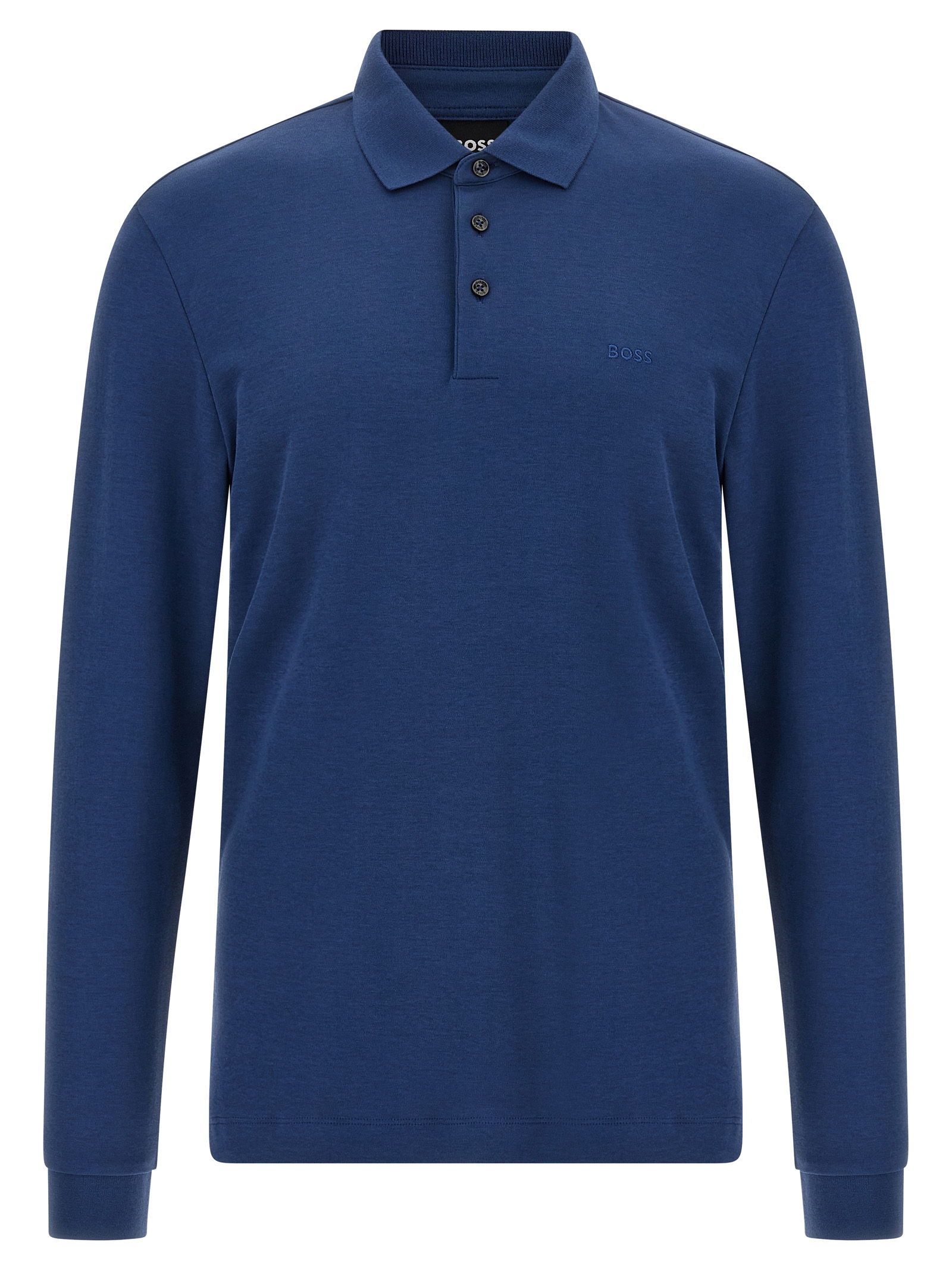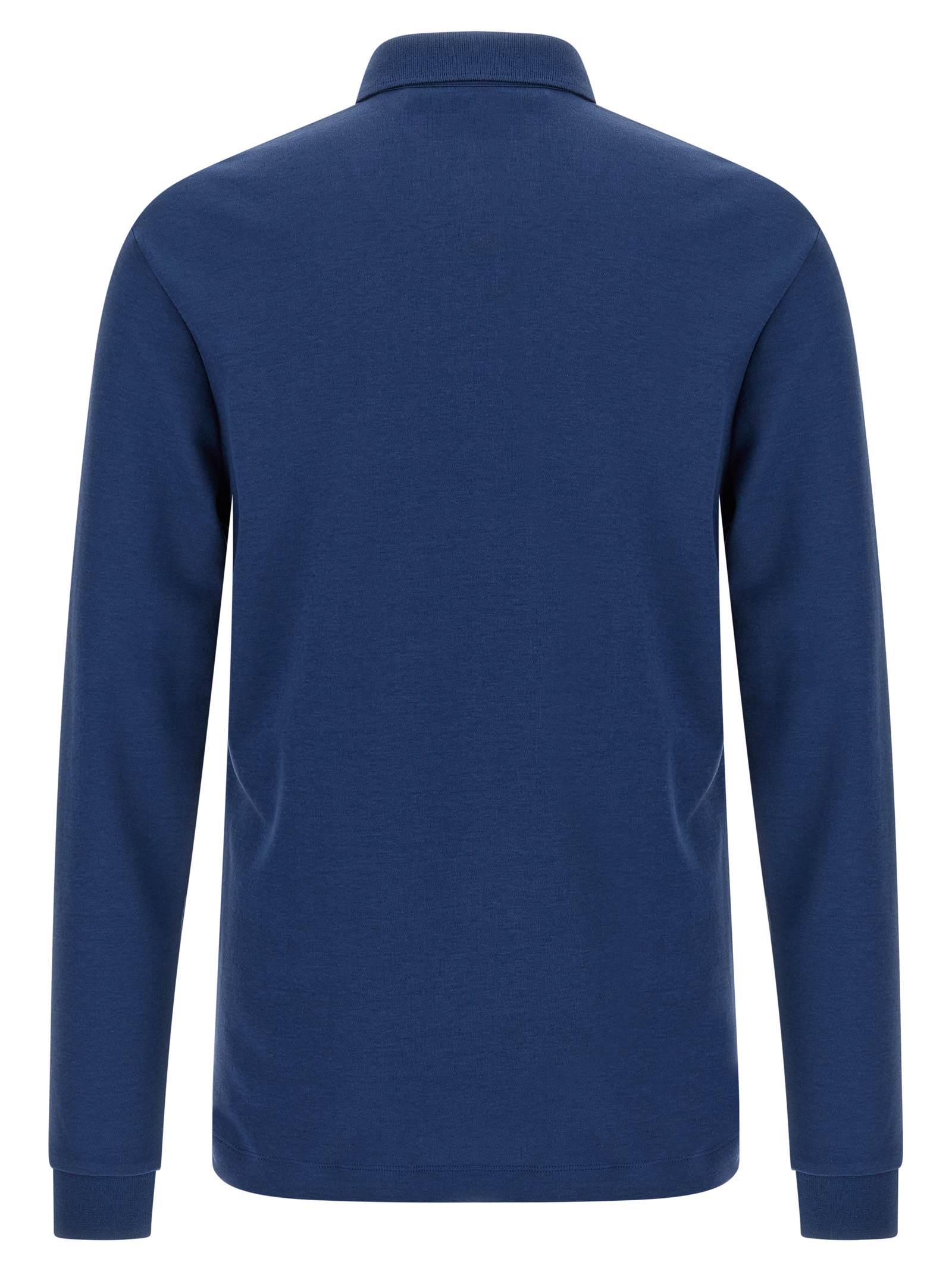 'Pado 30' cotton interlock mélange polo shirt with tone-on-tone embroidery on the front, collar and buttons, long cuffed sleeves and side slits.