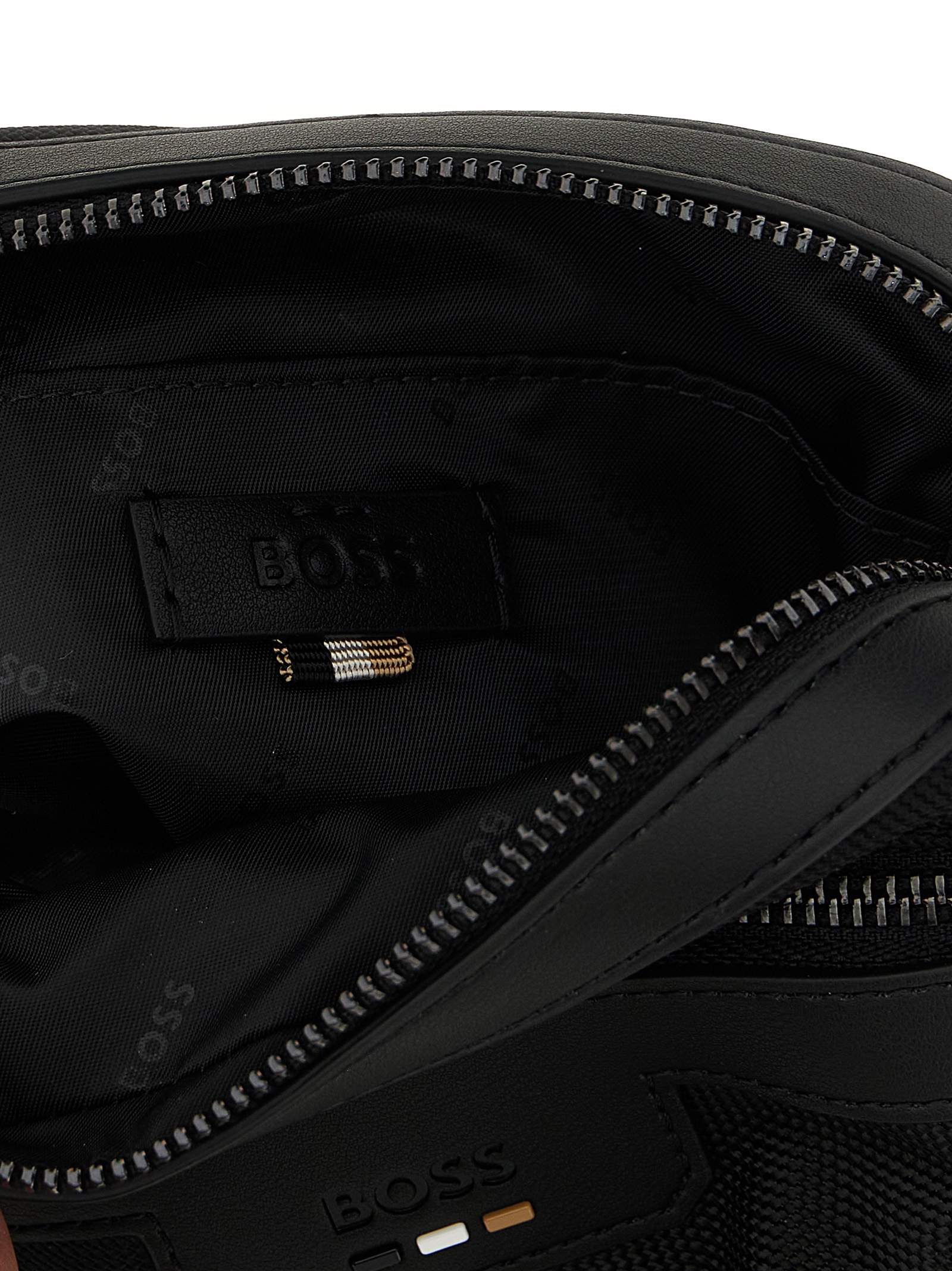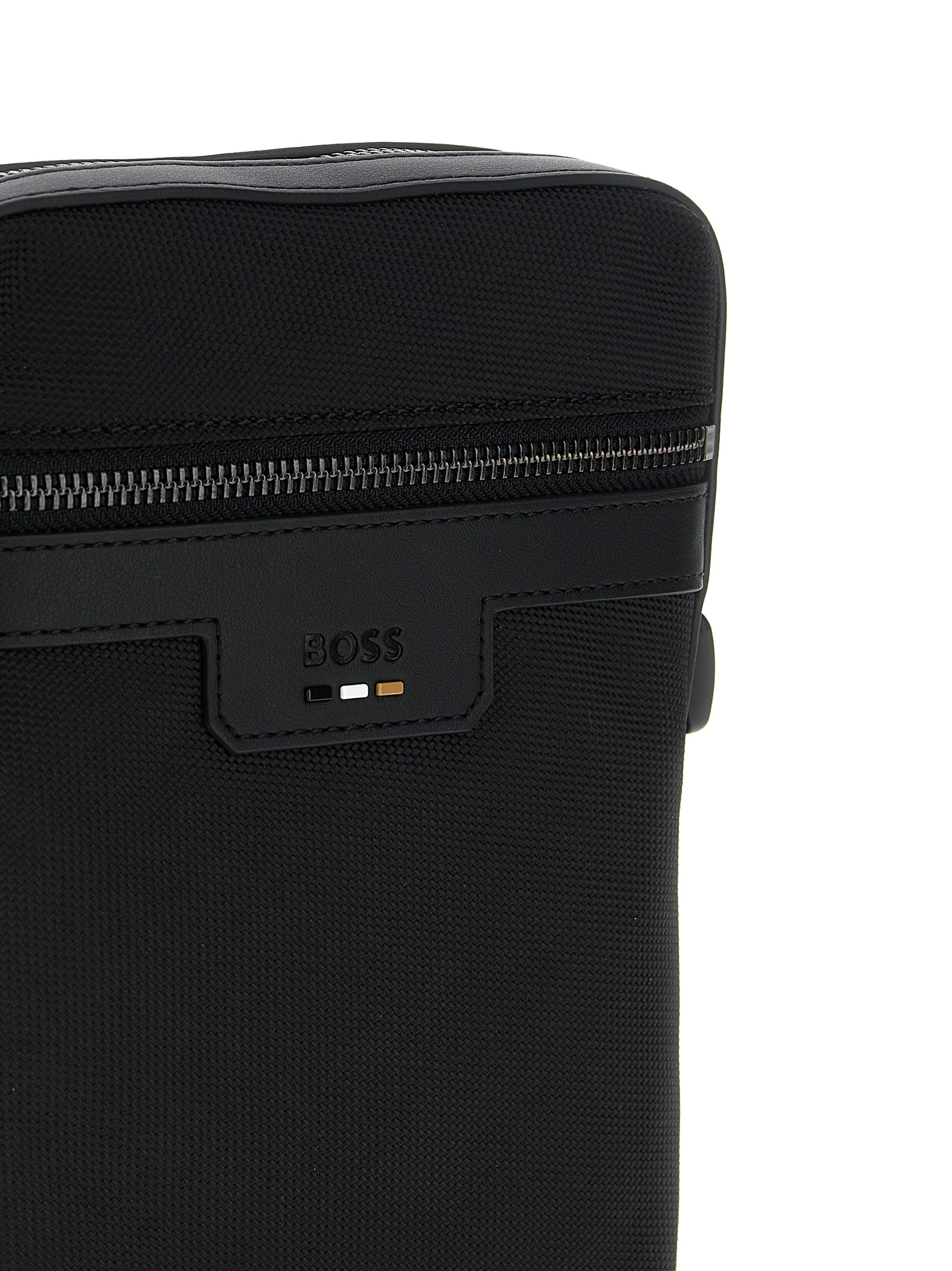 'Ray' honeycomb fabric crossbody bag with tone-on-tone leather details, top zip closure, embossed logo and front zip pocket, adjustable tape shoulder strap.
