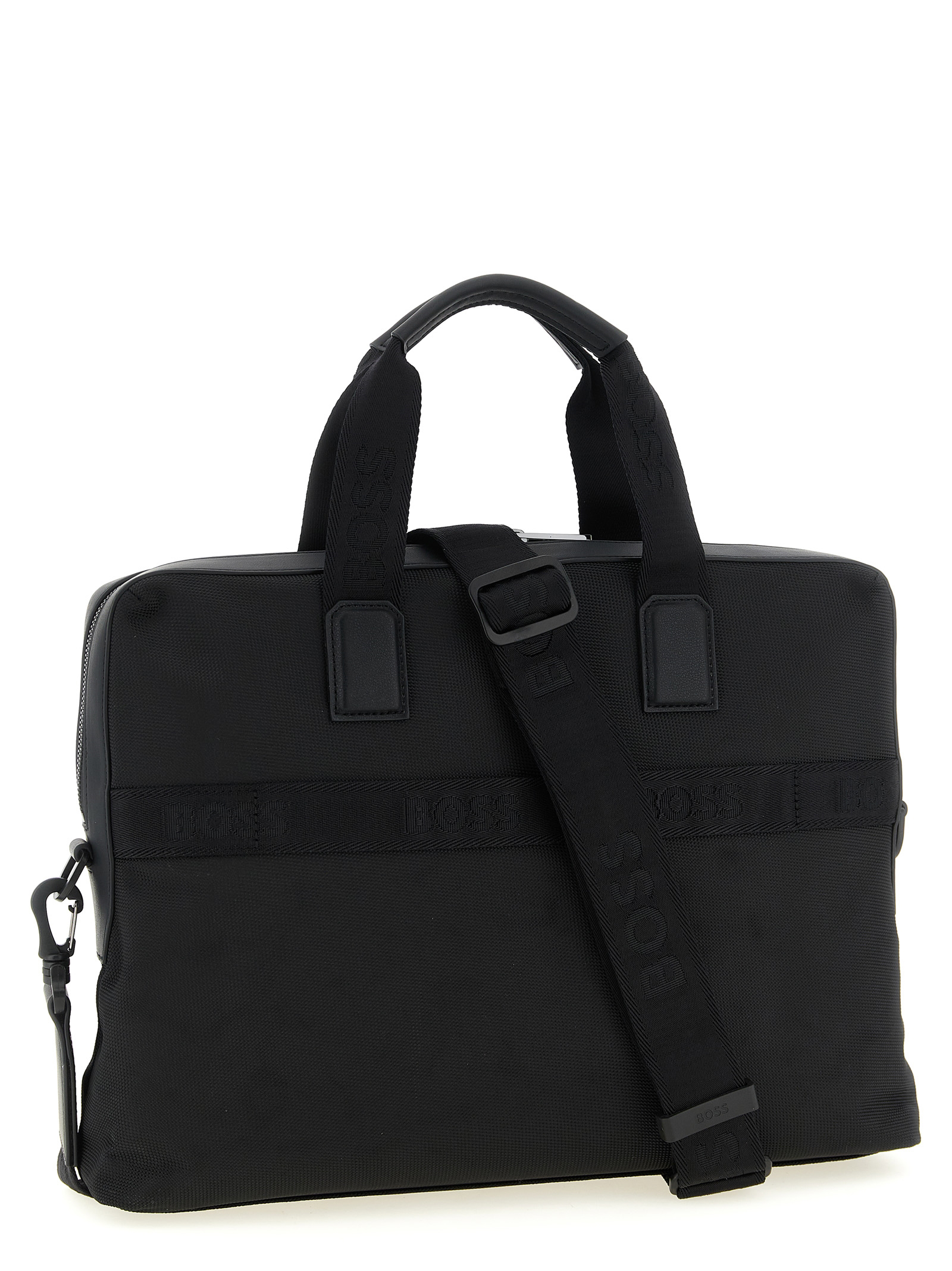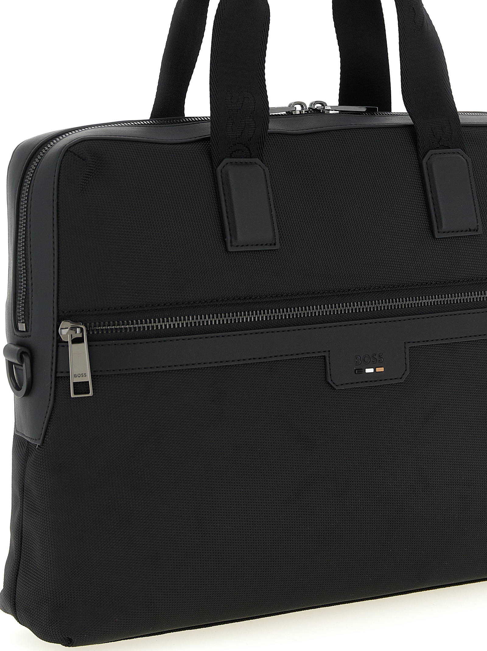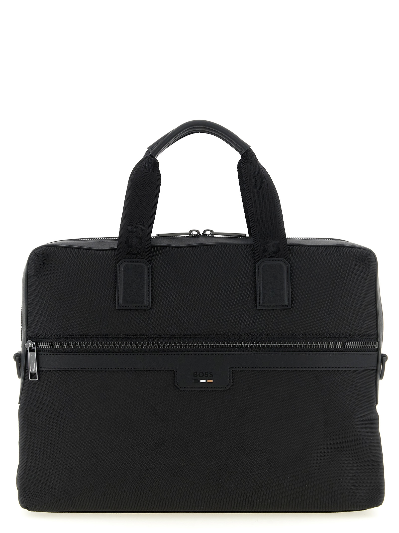 Сумка Ray' из нейлонового пике с деталями под кожу в тон, портфель, тисненый логотип и передний карман на молнии, двойная фиксированная ручка из ленты с логотипом, застежка-молния сверху, регулируемый и съемный плечевой ремень из ленты с логотипом.
