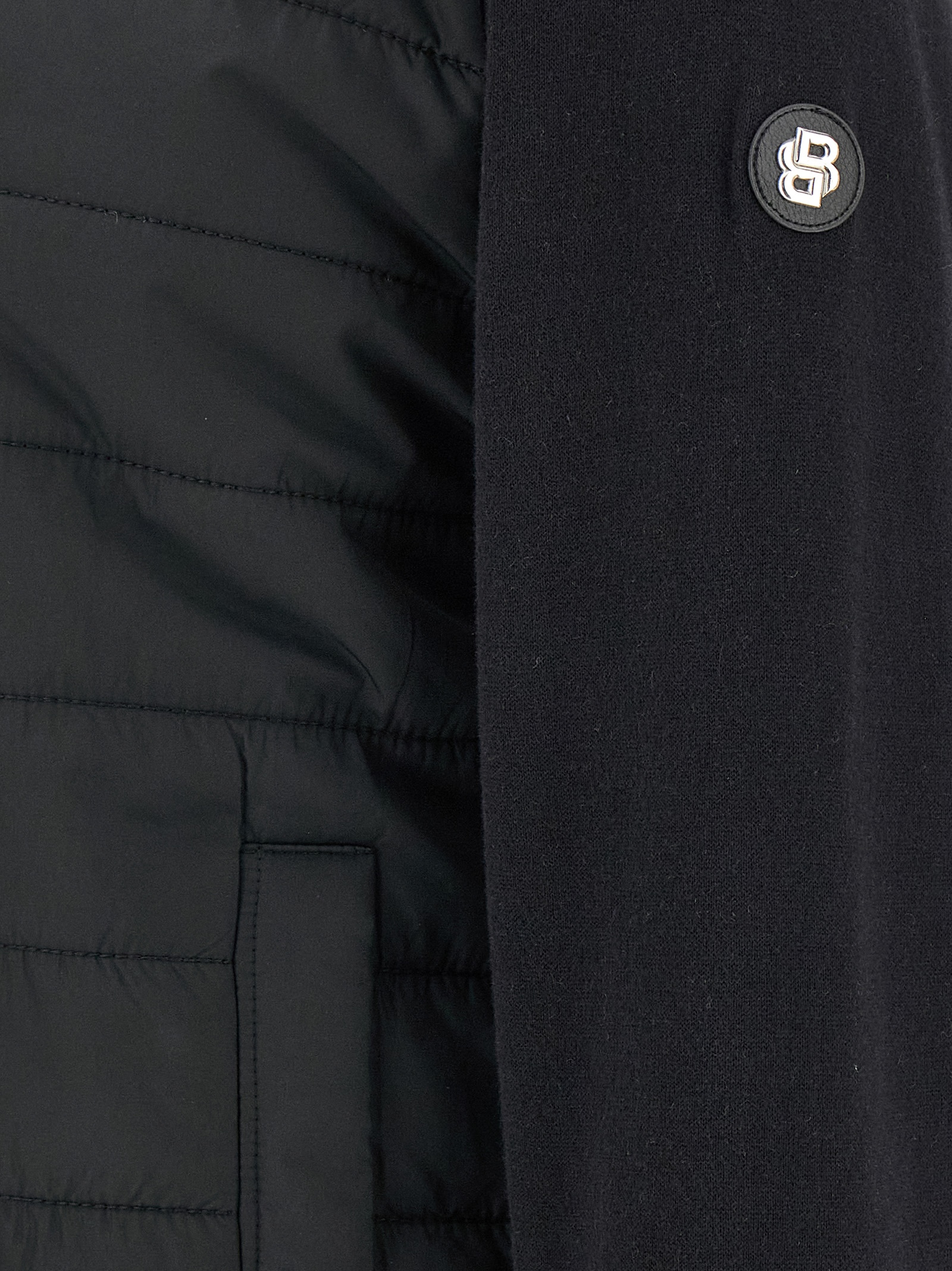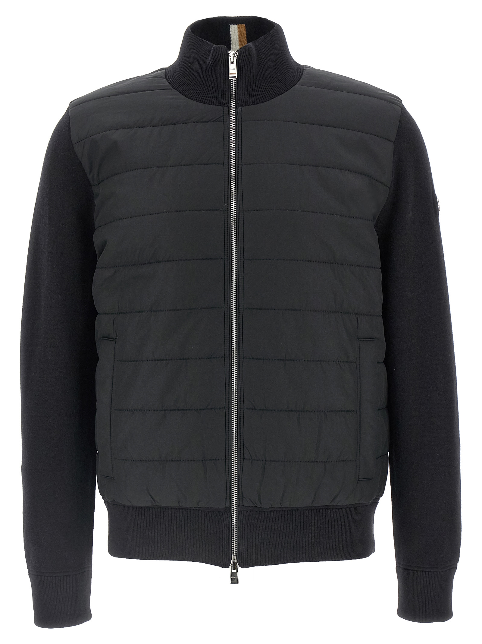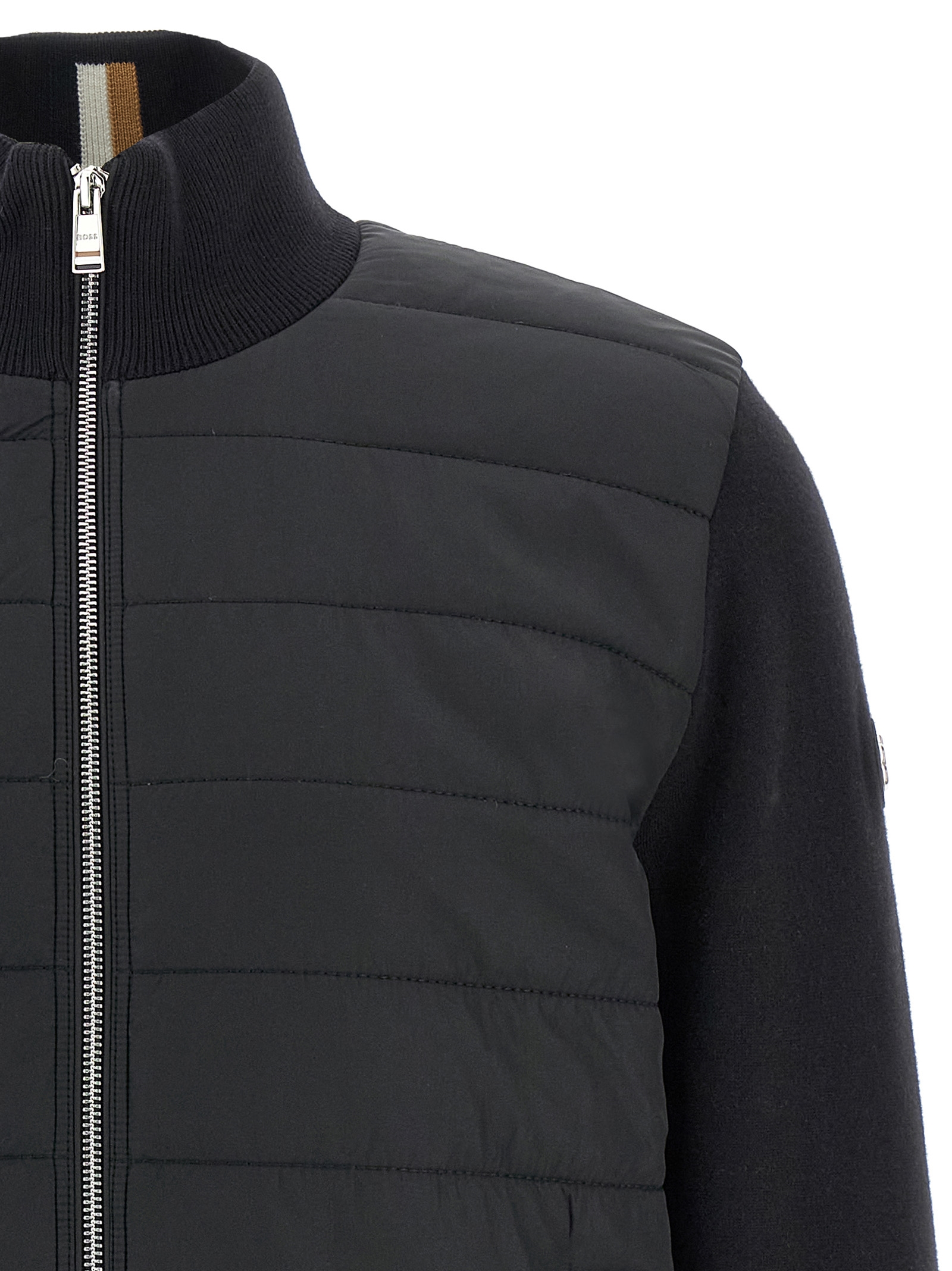 H-Hernesto' wool and cotton blend jacket with quilted and padded nylon front, high neck, front zip closure, pockets, long cuffed sleeves and leather patch with metal logo appliqué.