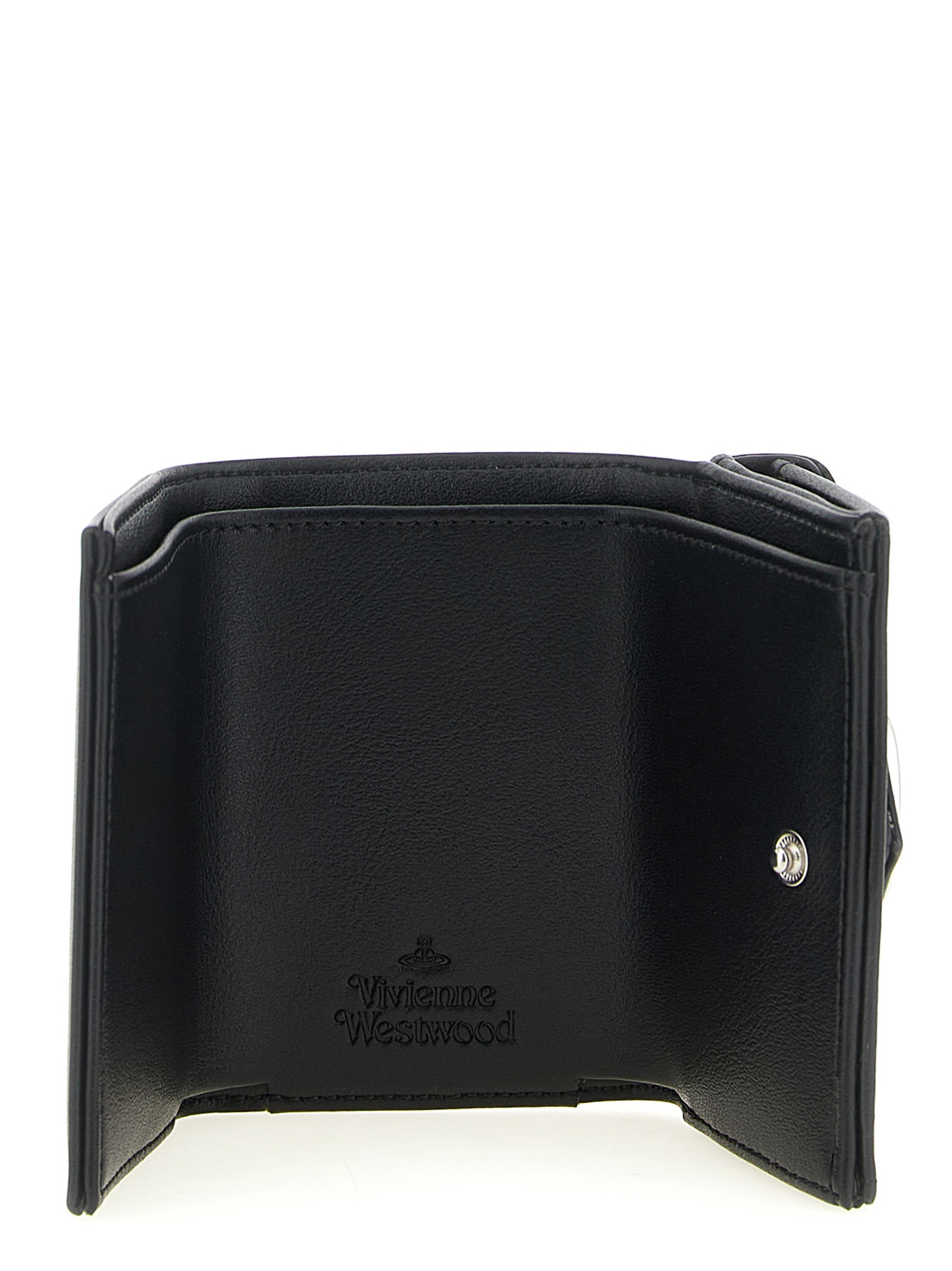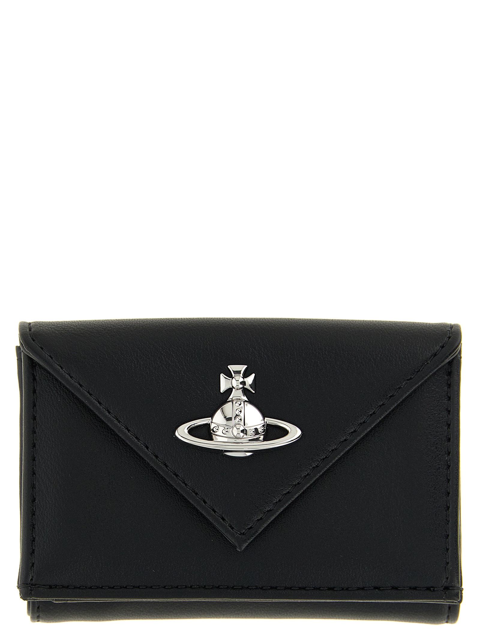 'Envelope' bi-fold wallet in smooth leather-effect PU with double flap closure with snap button and metal Orb logo on the front.