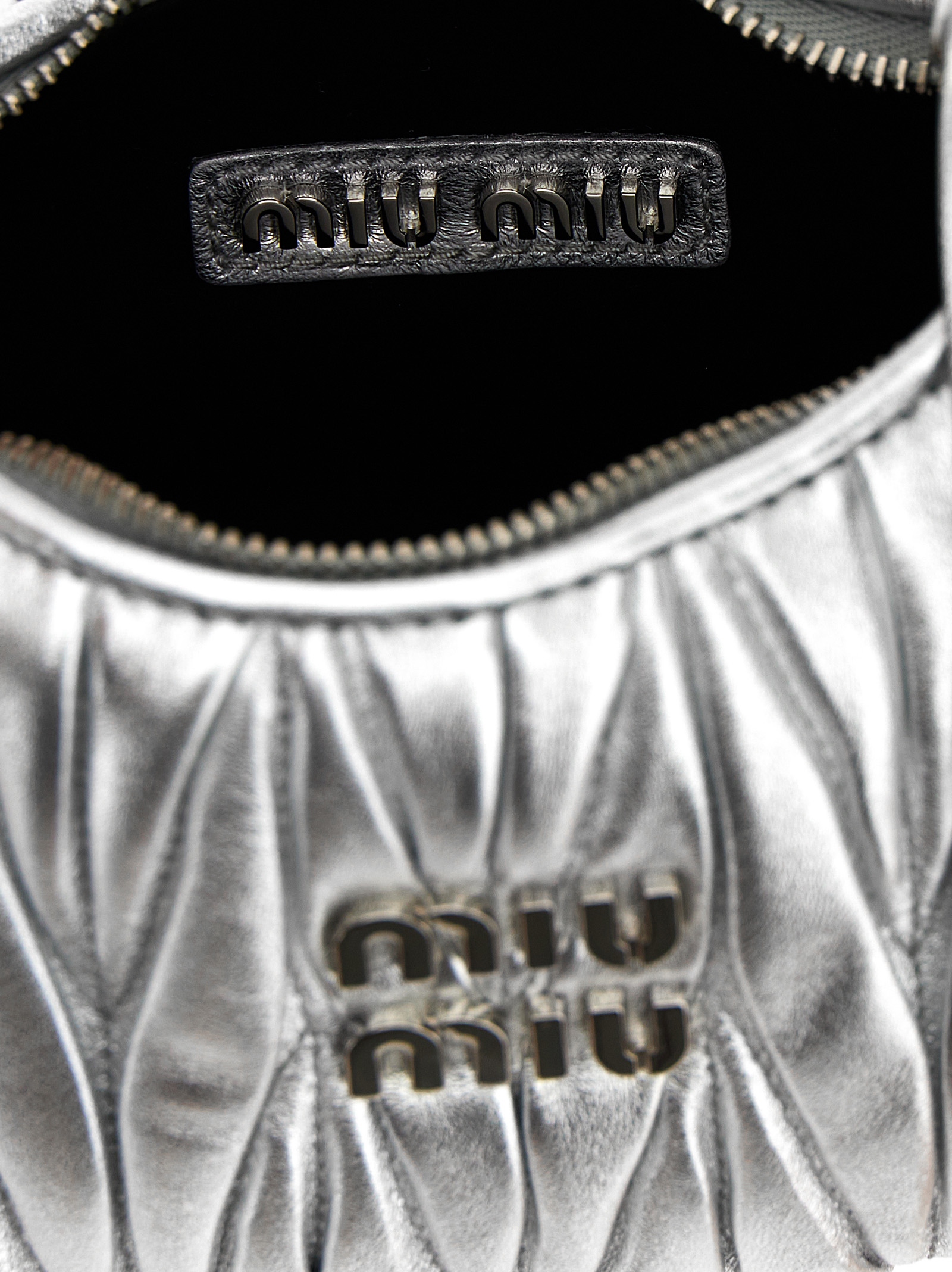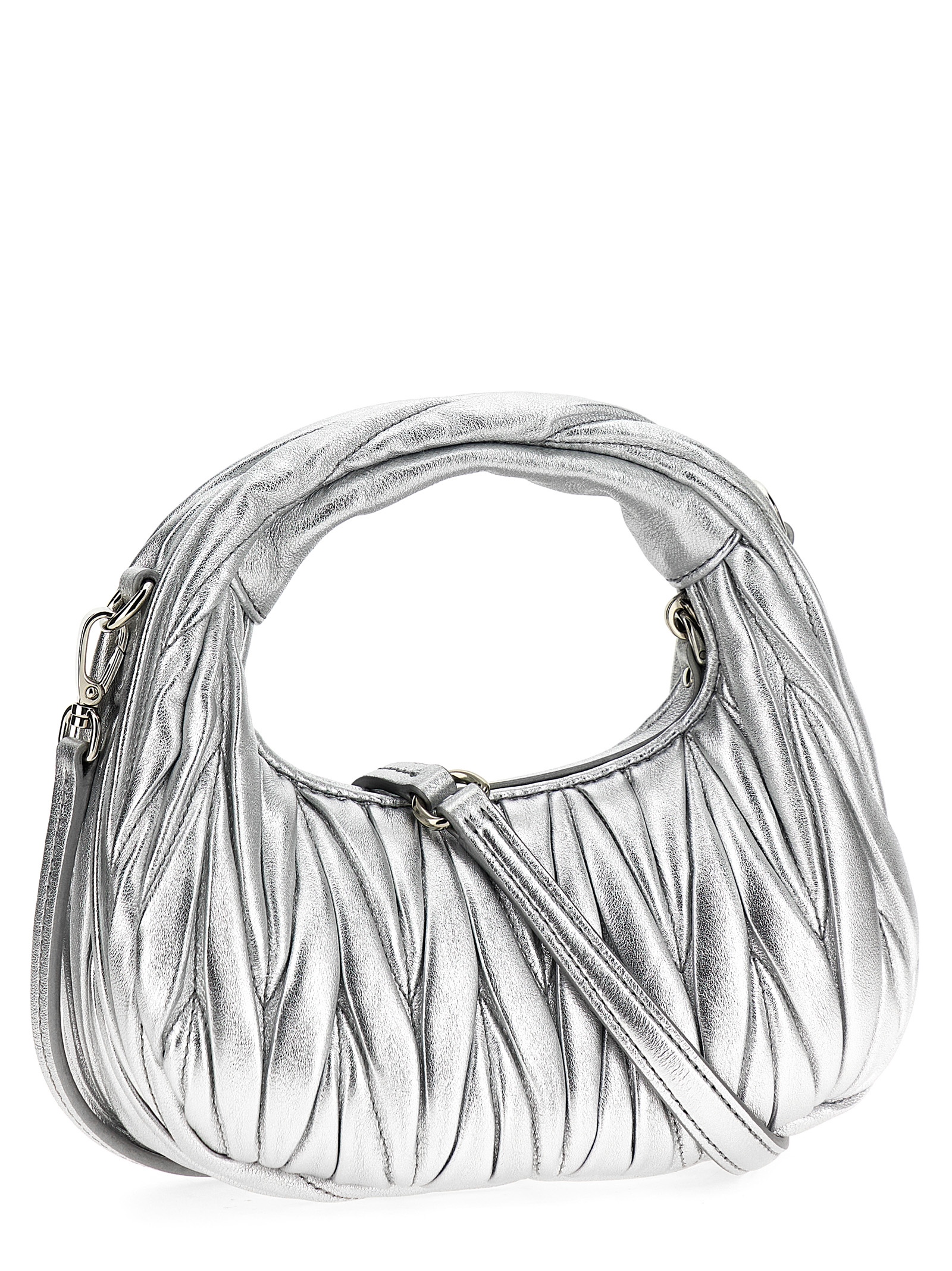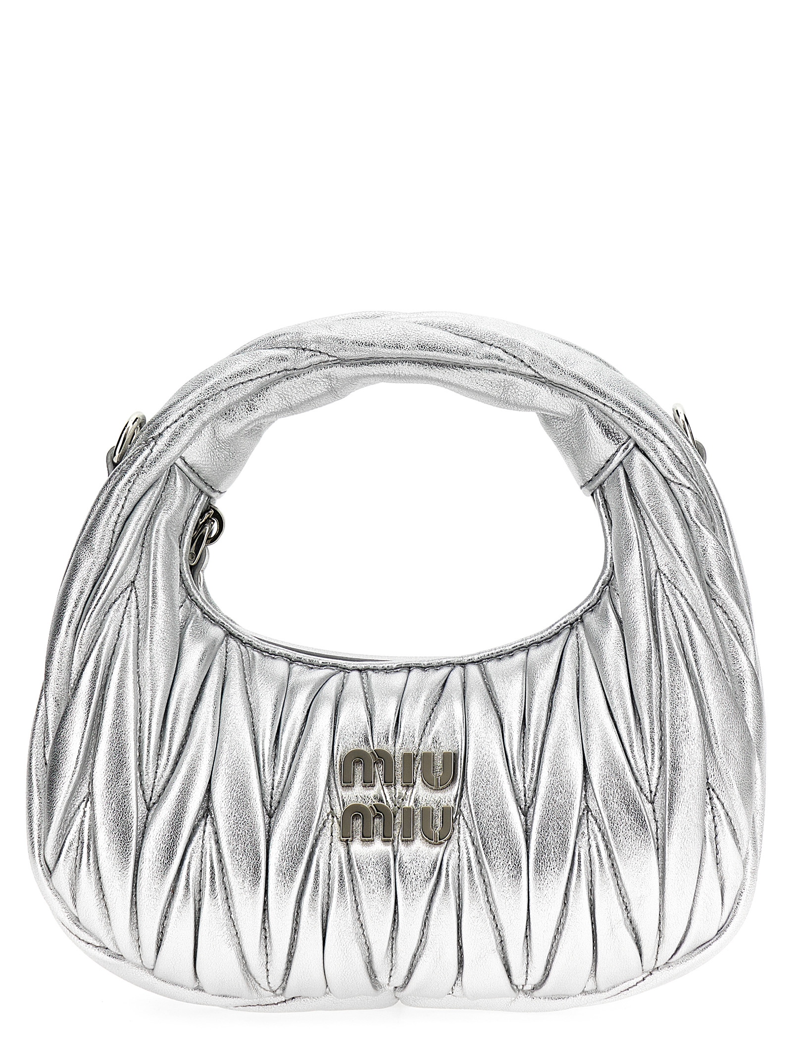 'Hobo Wander' matelassé leather handbag with front metal logo, zip closure, removable leather shoulder strap.Характеристики товара