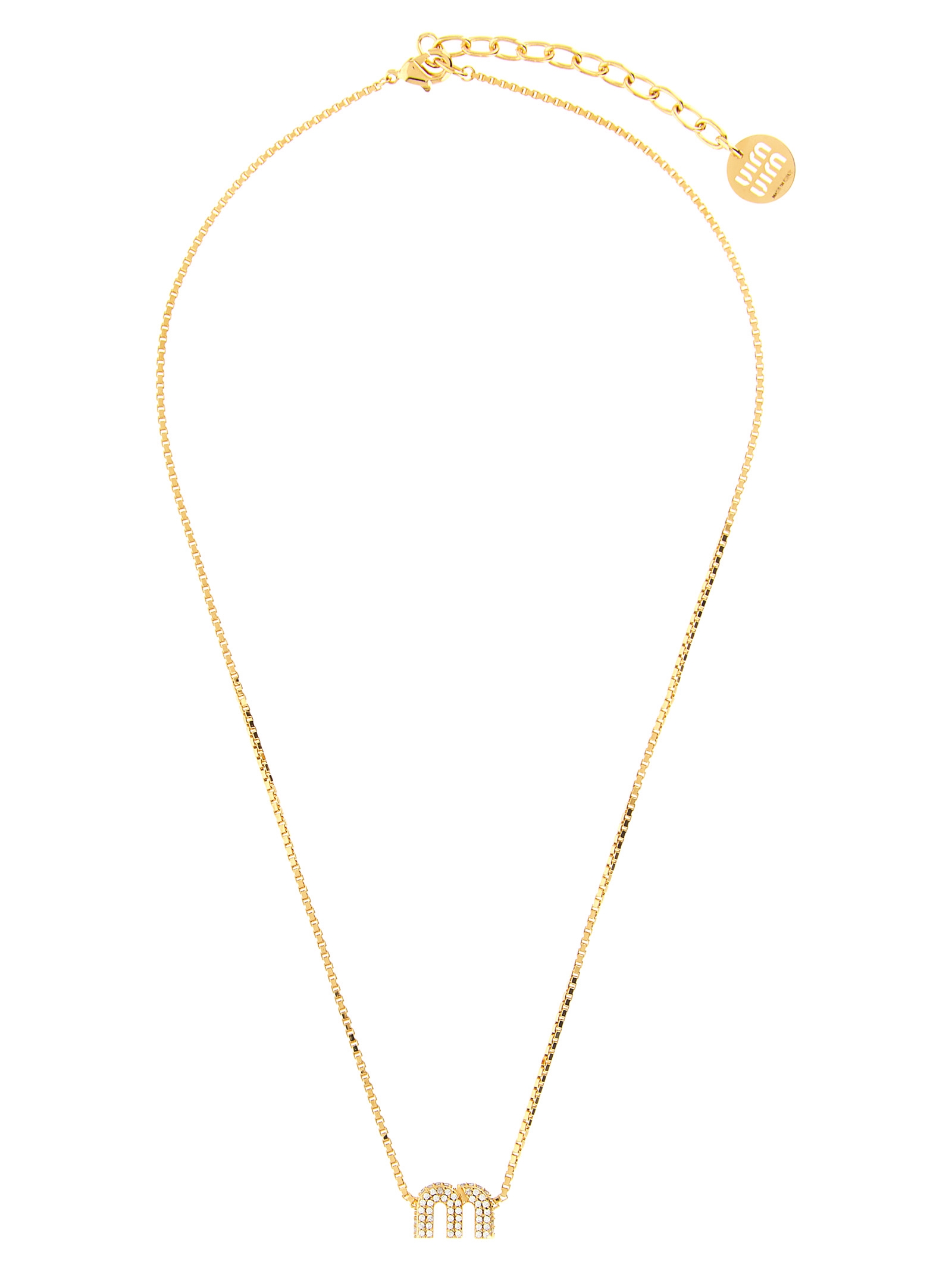 Металлическое колье с логотипом из страз, регулируемое, застежка-карабин.Характеристики товара