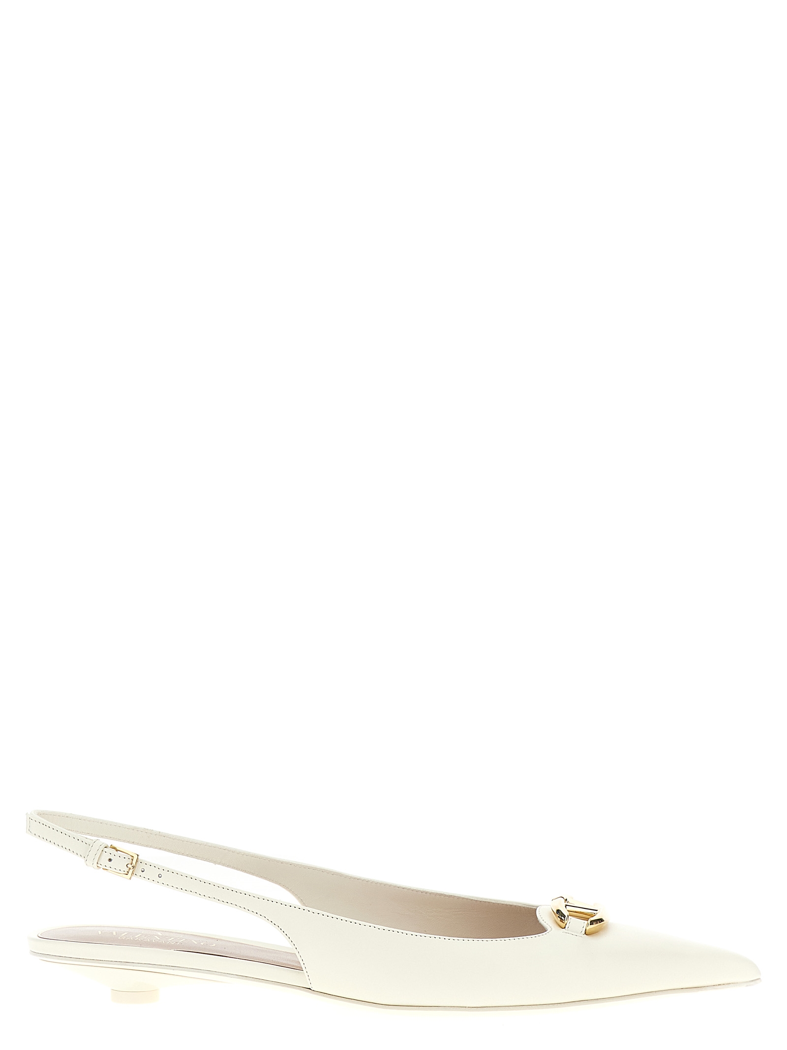 Leather slingback shoes with gold metal 'VLogo The Bold Edition' appliqué on the front, adjustable strap.
