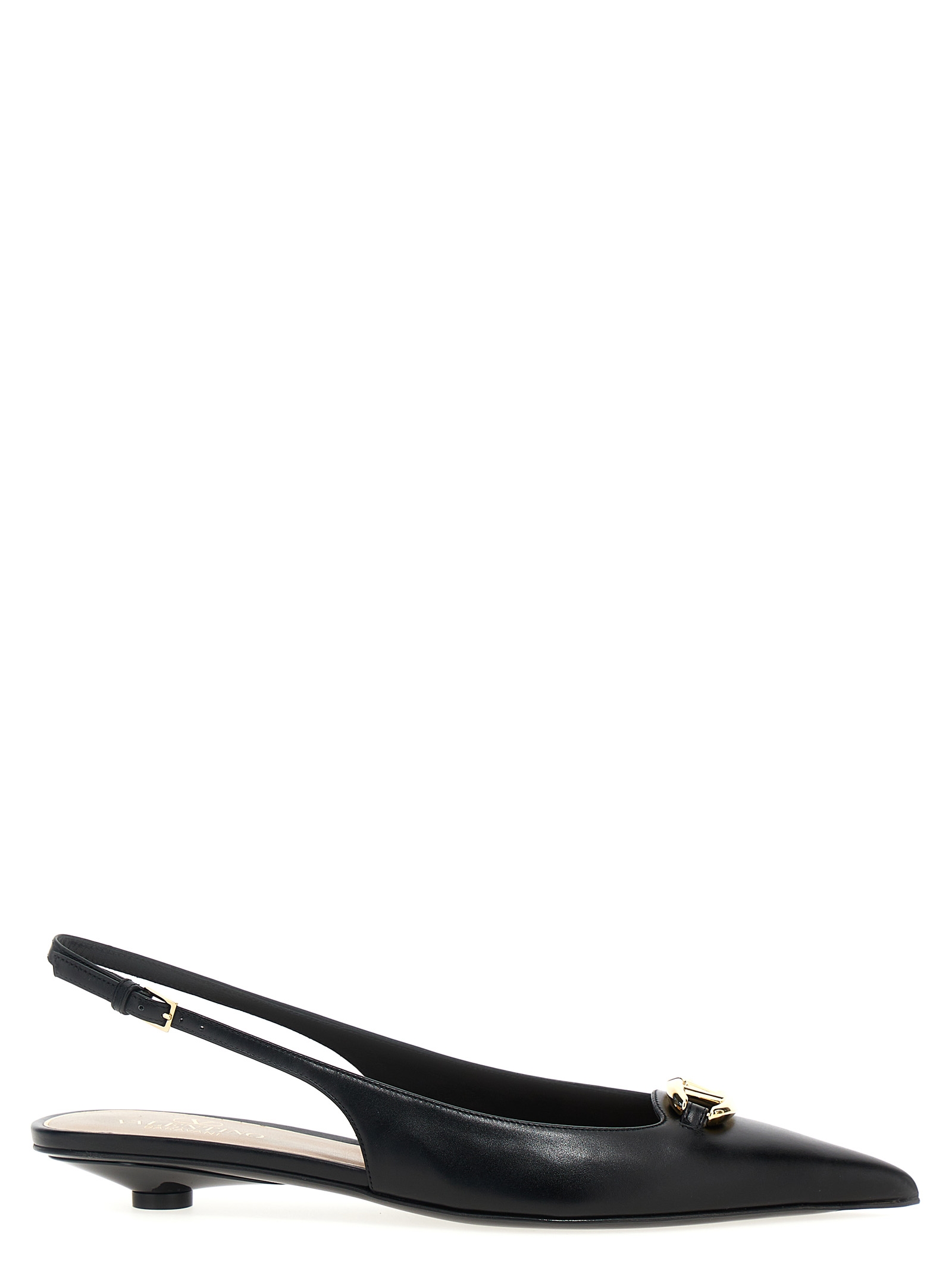 Leather slingback shoes with gold metal 'VLogo The Bold Edition' appliqué on the front, adjustable strap.
