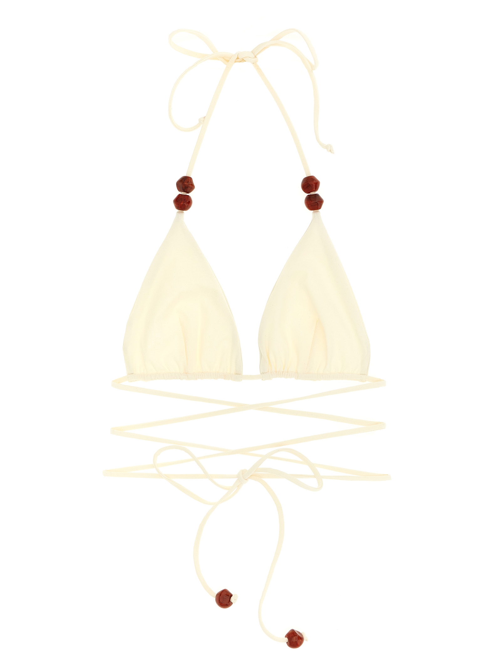 Triangle bikini top RE 26 with adjustable lacing and beaded details.