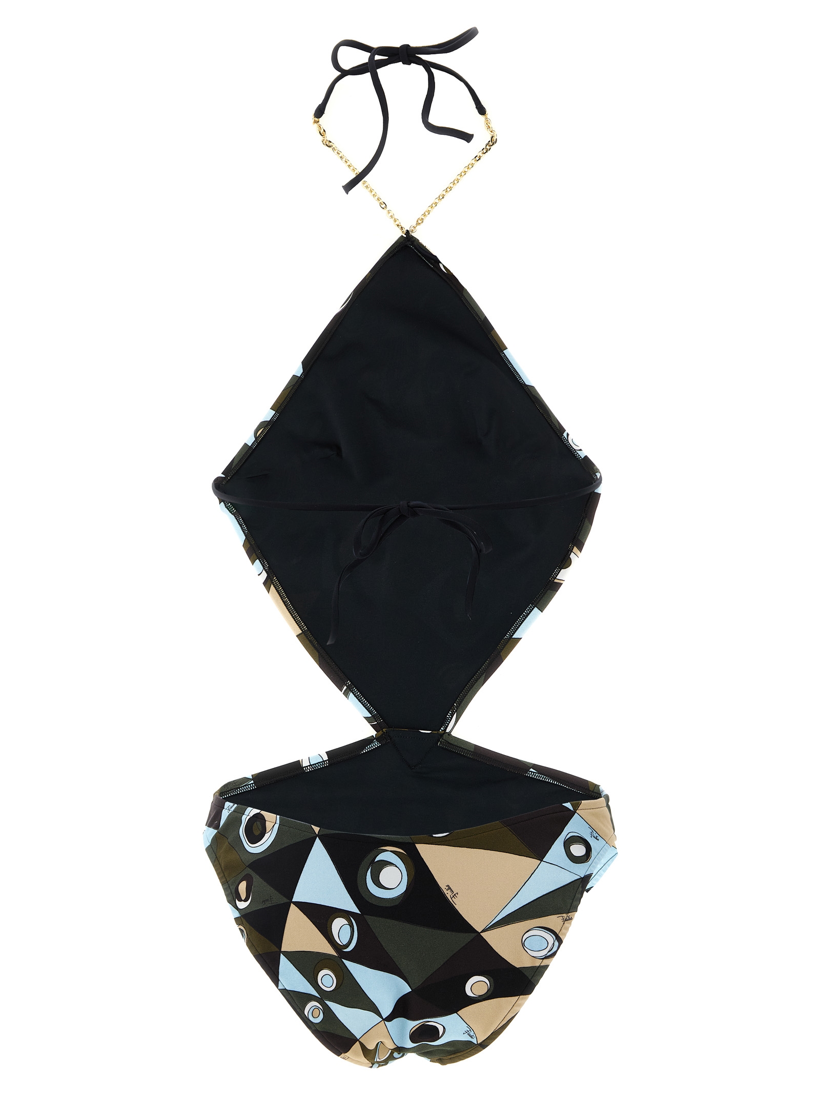 'Occhi' print Lycra trikini with full neckline, chain detail, shoulder straps tied at the neck, cut-out details on the back and hips.Характеристики товара