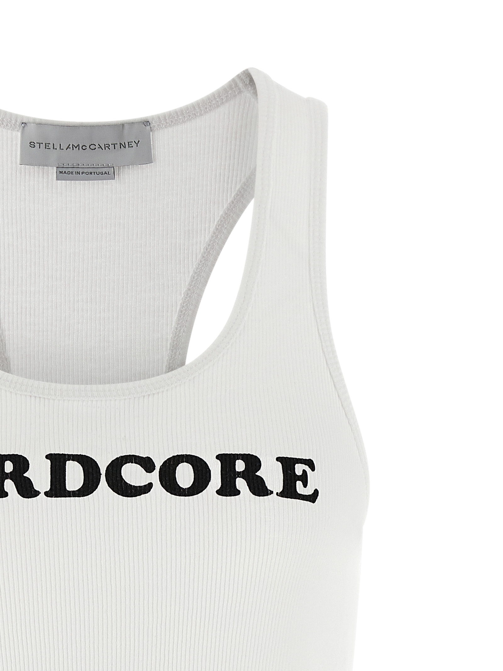 Sleeveless top in stretch cotton with round neckline, front 'Hardcore' slogan print.