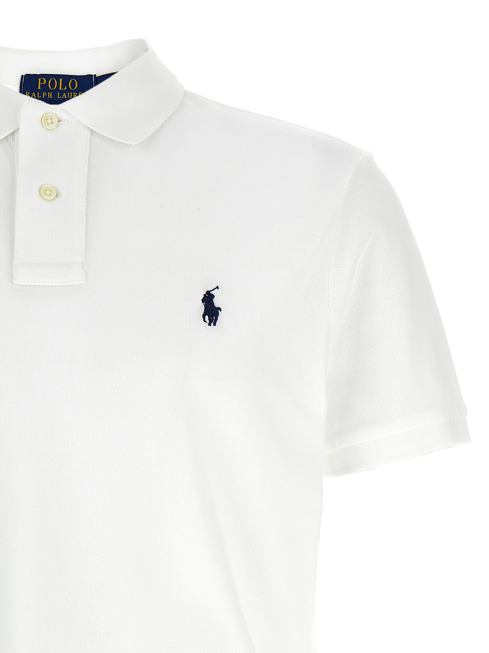 Polo shirt in piqué cotton with front logo embroidery, collar and buttons, short sleeves, side splits.