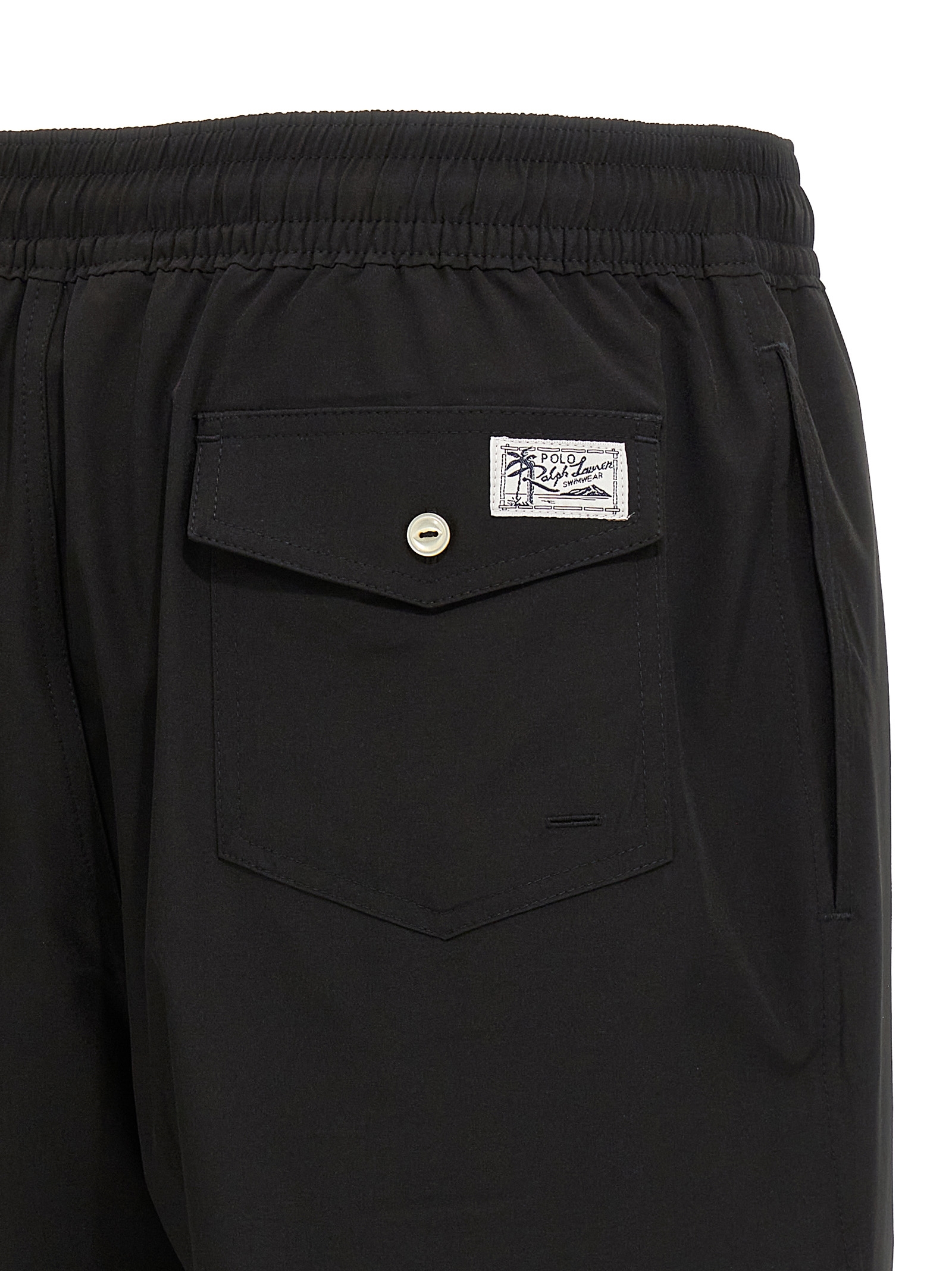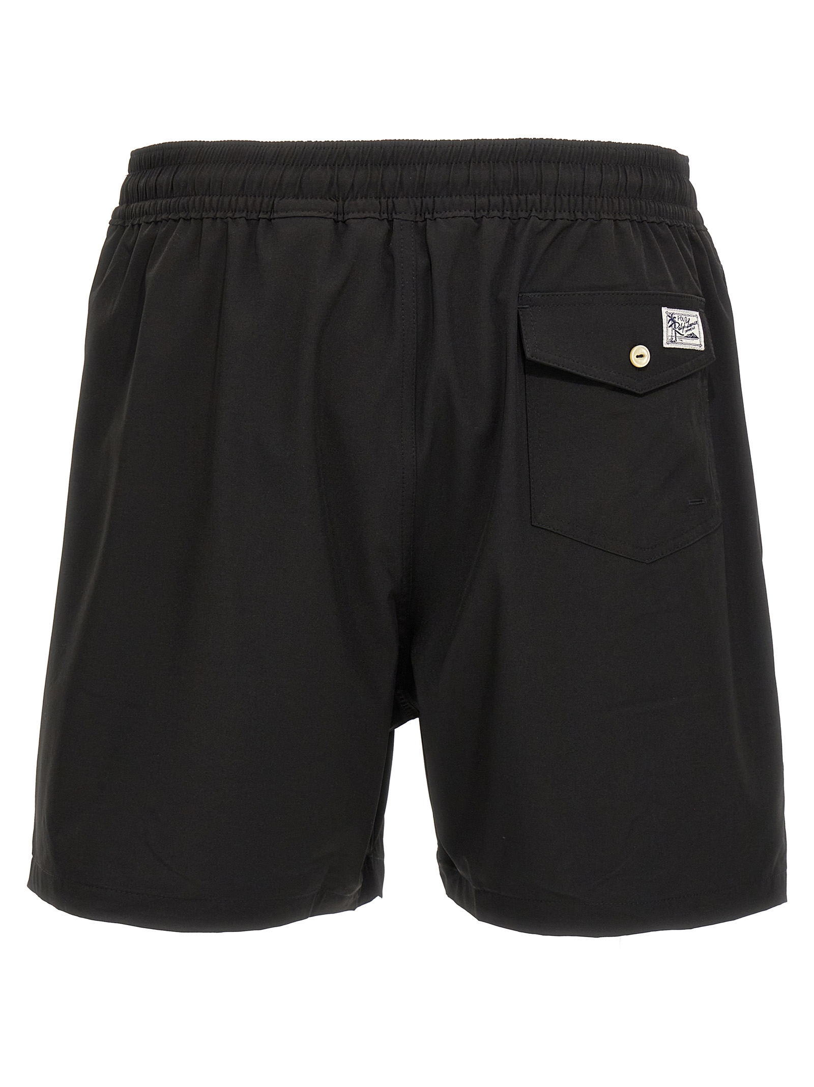 Swim shorts in technical fabric with logo embroidery, drawstring elastic waistband, pockets, inner mesh briefs.