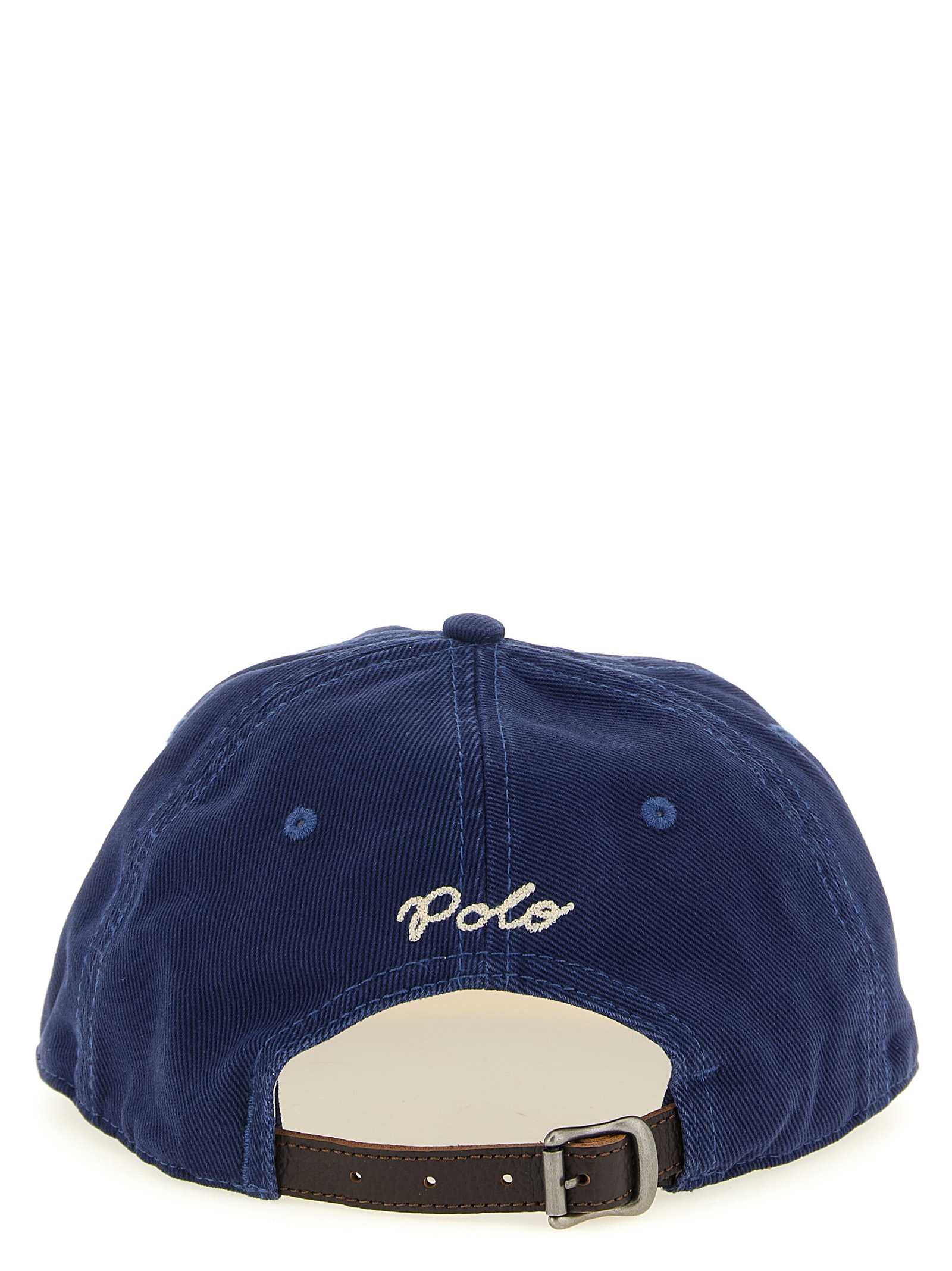 Бейсболка из саржи с эффектом потертости слева, персикового цвета с эффектом потертости, шестипанельная конструкция, контрастная фетровая нашивка «Ralph» спереди, вышивка логотипа цепочным стежком и регулируемый кожаный ремешок сзади.Характеристики товара