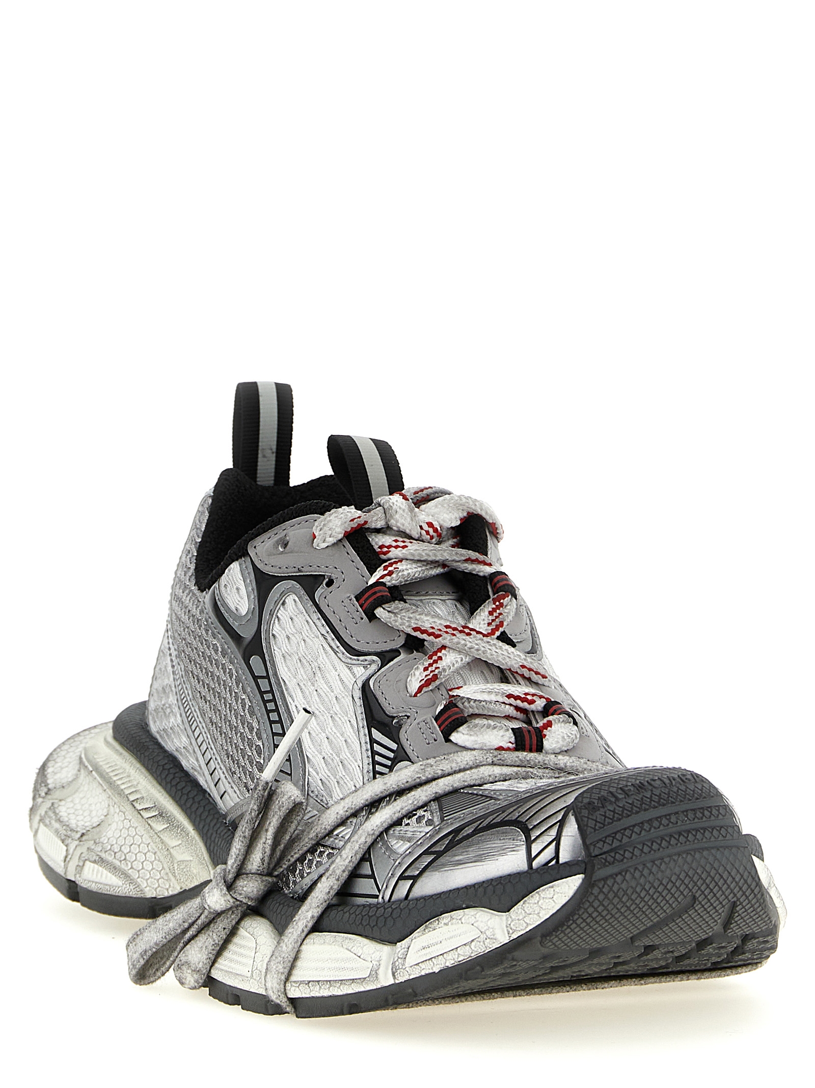 '3XL' worn effect mesh and polyurethane sneakers, laces, rubber sole, cut on the heel.