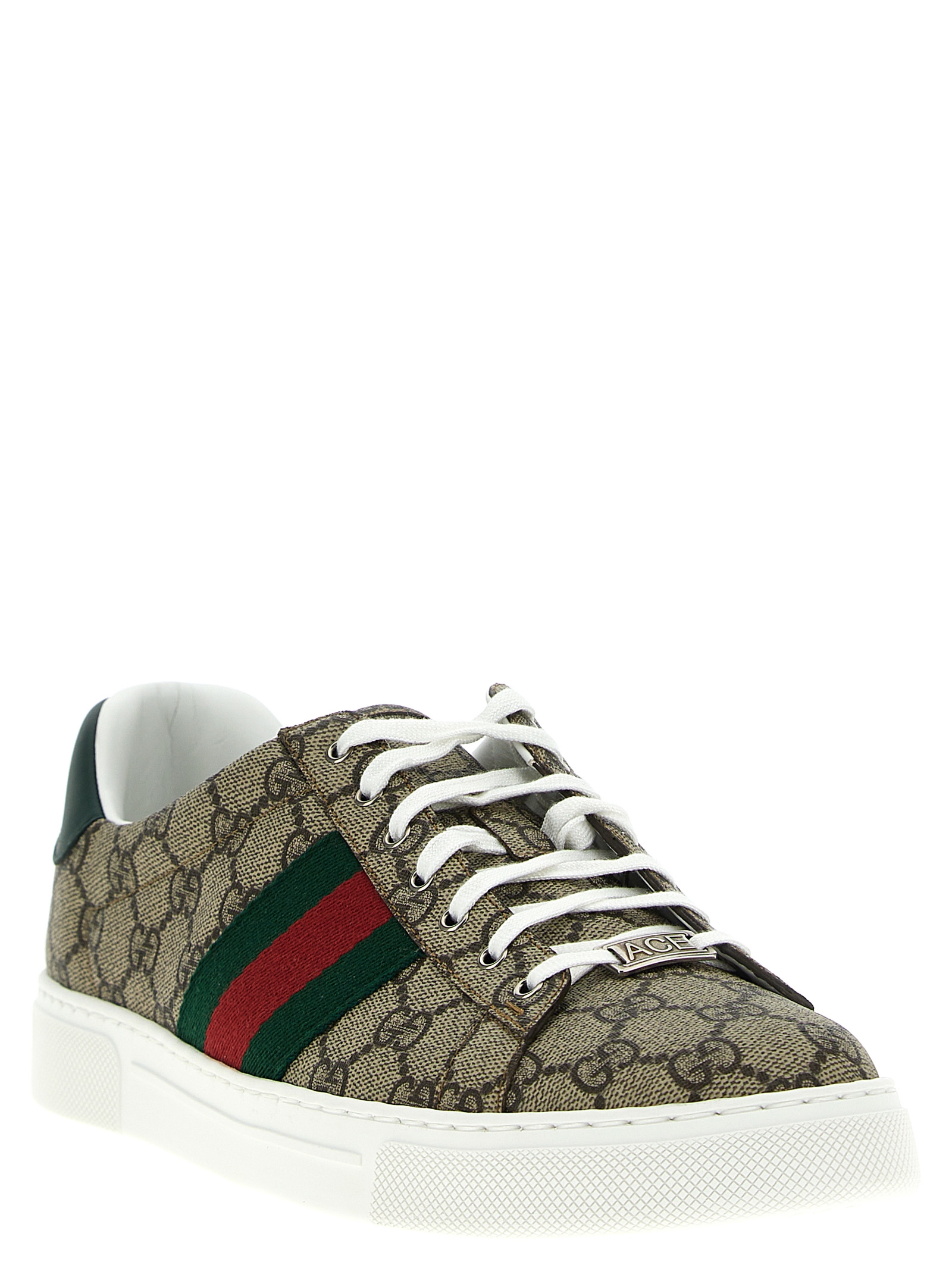 'Gucci Ace' sneakers in GG Supreme fabric with Web ribbon detail, laces, rubber sole.