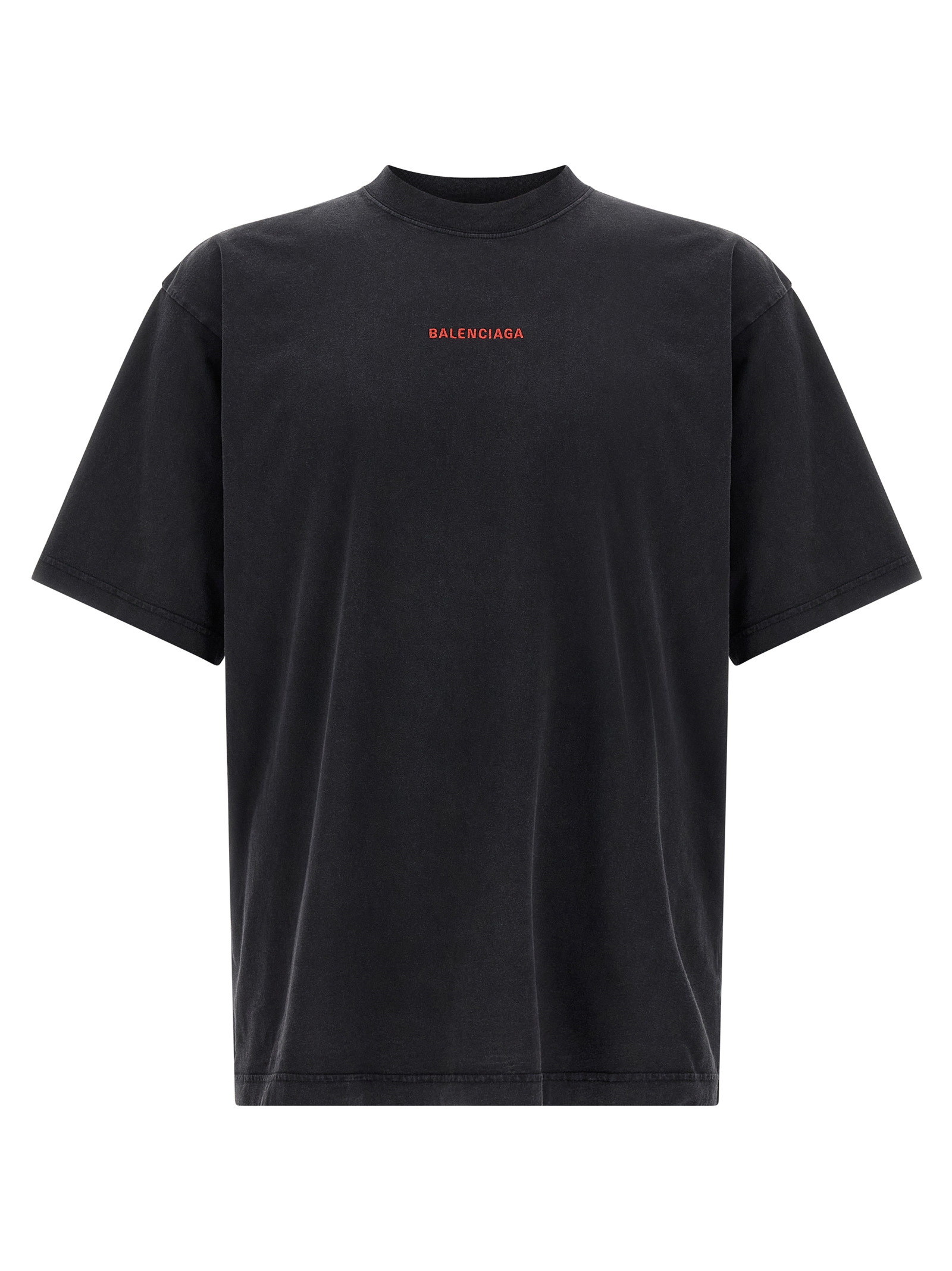 Cotton T-shirt, used effect, crew neck, front and back logo embroidery, short sleeves.