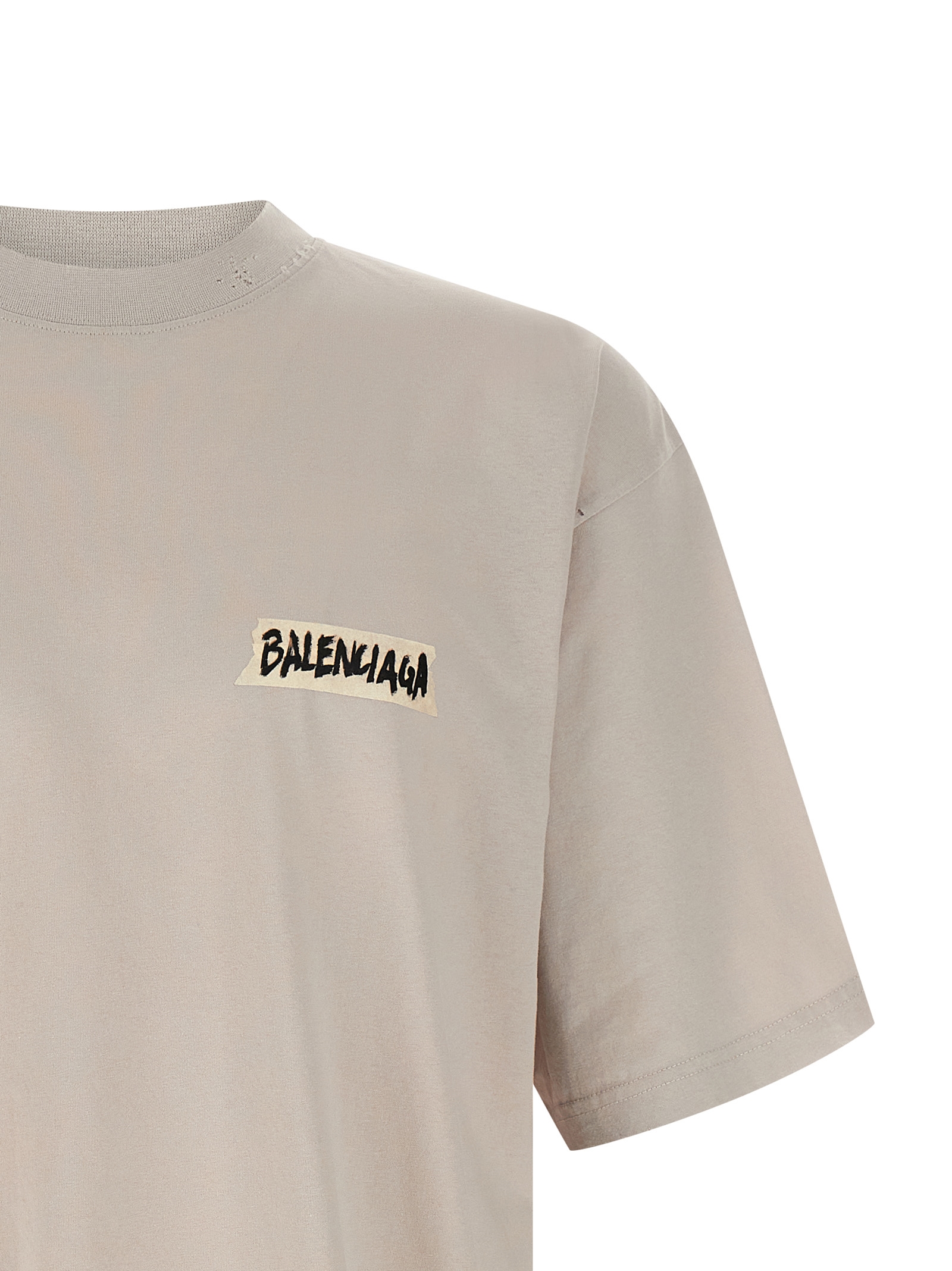 Dry jersey faded T-shirt, 'Masking Tape' print on the front and back, crew neck, short sleeves with dropped shoulders.