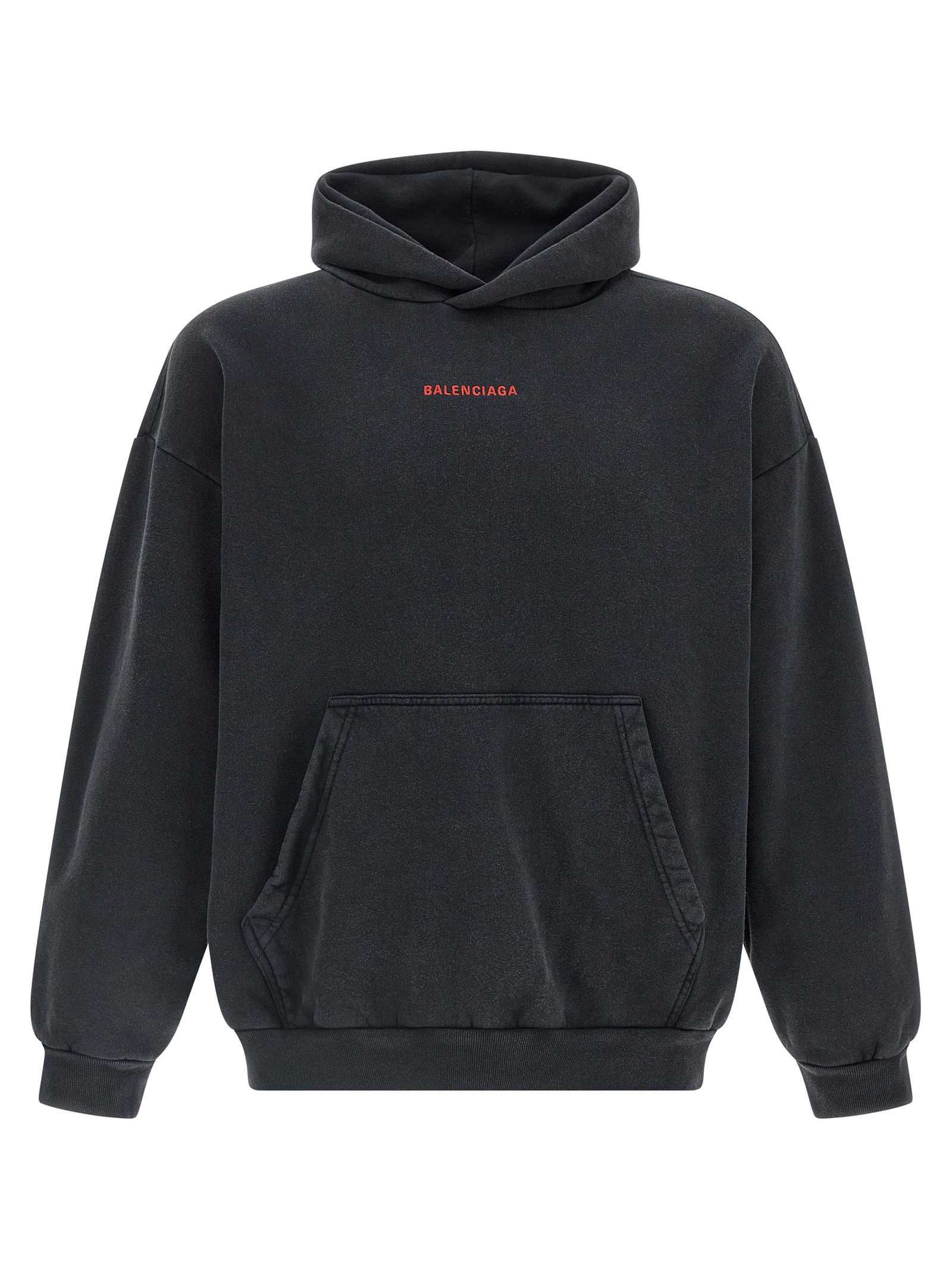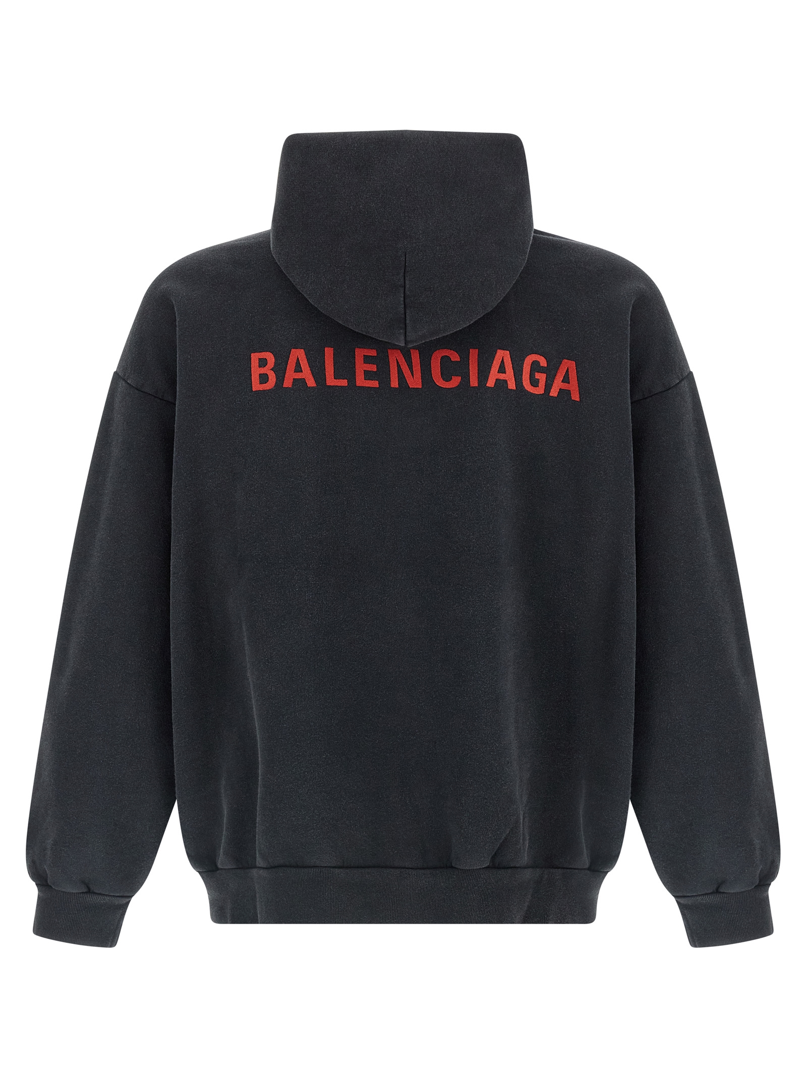 Dry faded fleece hoodie with Balenciaga Back embroidery, kangaroo pocket, long cuffed sleeves and dropped shoulders.