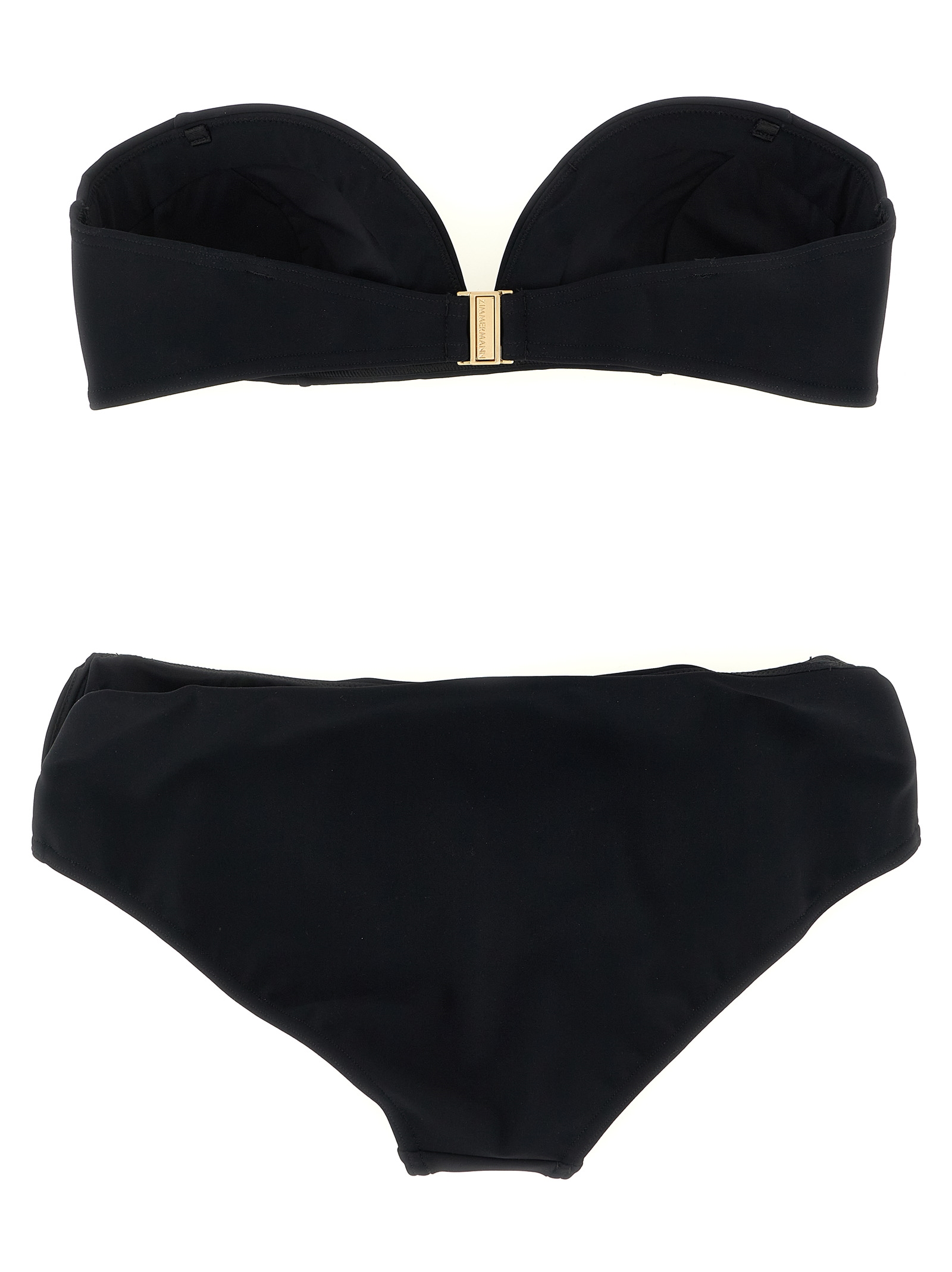 'Wanderlust Curve' bikini in technical fabric consisting of a bandeau top with preformed cups, back hook closure, adjustable and removable shoulder straps, and briefs with classic cover and upper side slits with inner V-shaped underwire.