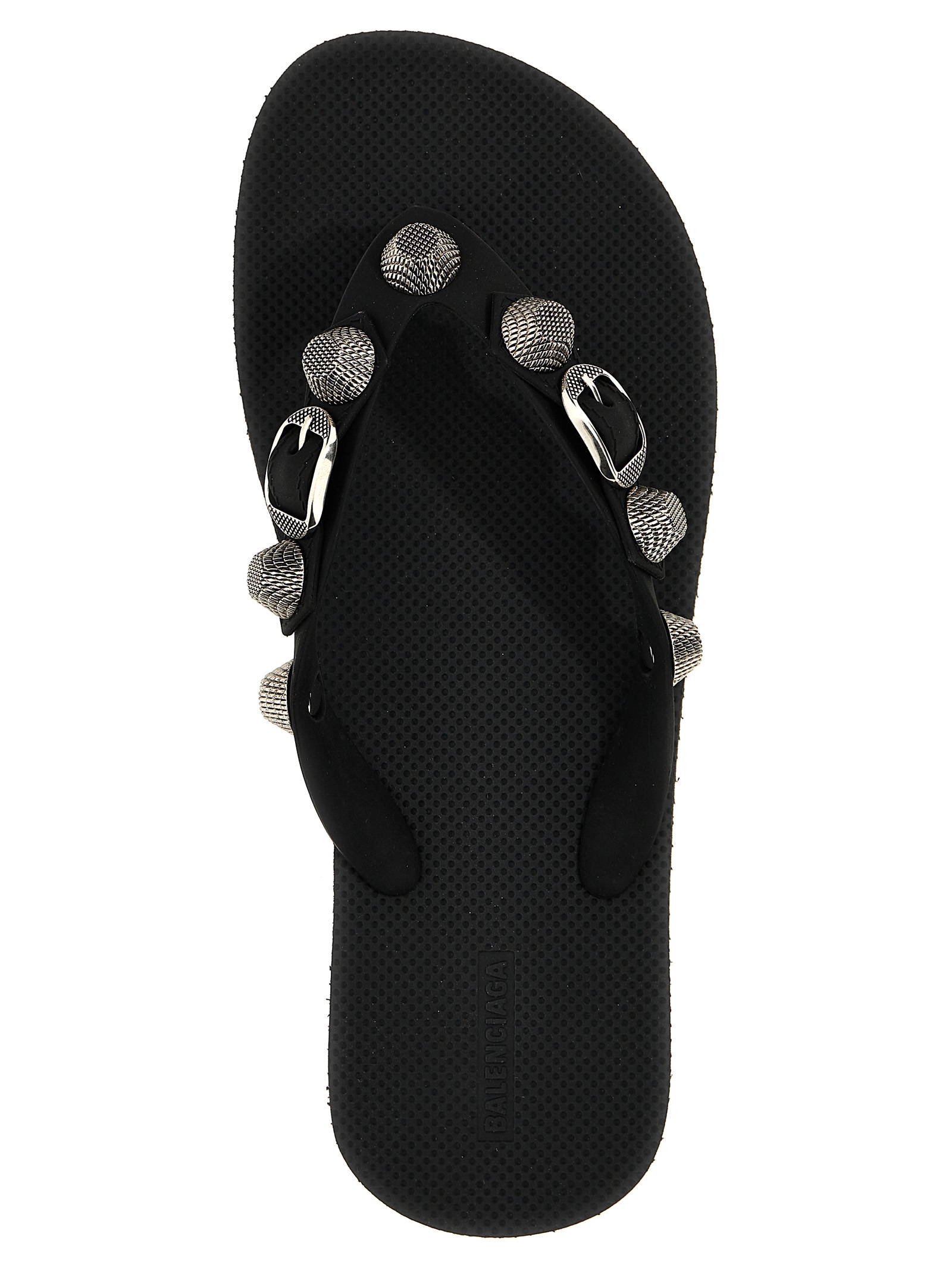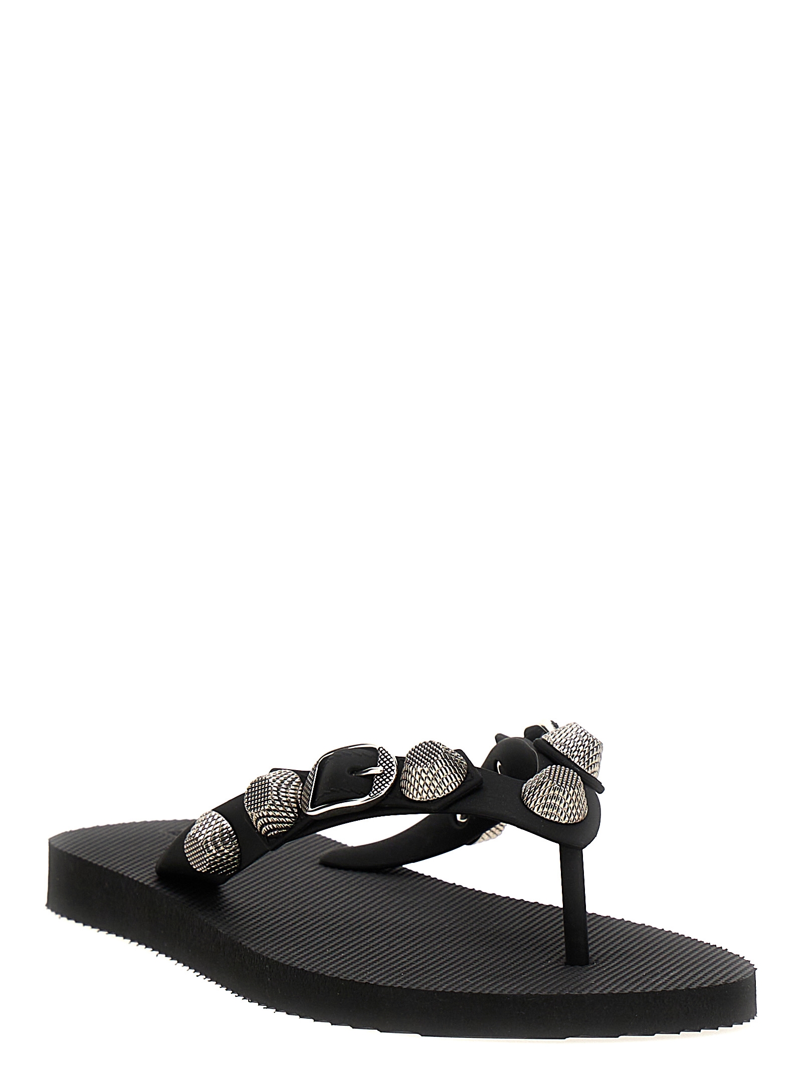 Капсульная коллекция для отдыха 'Cagole': сандалии-вьетнамки из резины с металлическими заклепками и пряжками.Характеристики товара