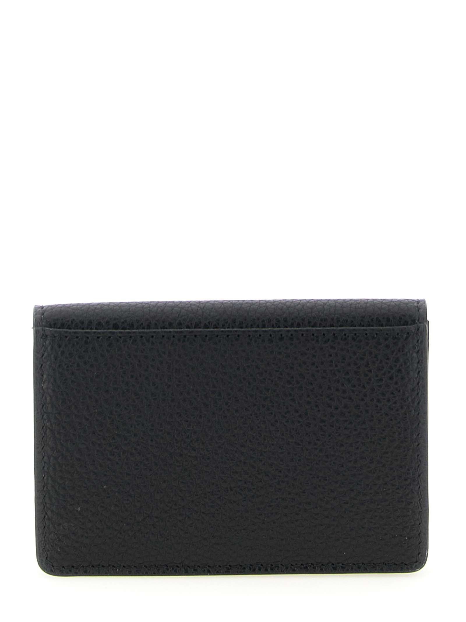 Hammered calf leather keyring, flap closure with snap button and front metal 'Gancini' logo detail, contrasting smooth leather lining, metal ring chain, back pocket.
