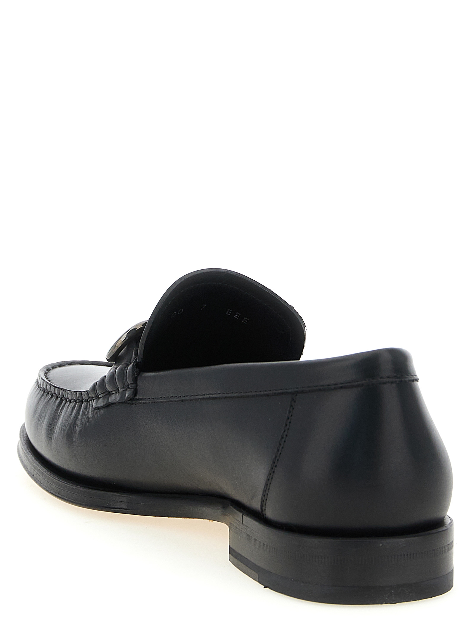 Кожаные лоферы «Teatro» с трубчатой конструкцией, включающей несколько этапов обработки и ручную прошивку, зауженный поднос с завитками, металлическая застежка «Gancini» спереди, кожаная подошва с полурезиновым каблуком.