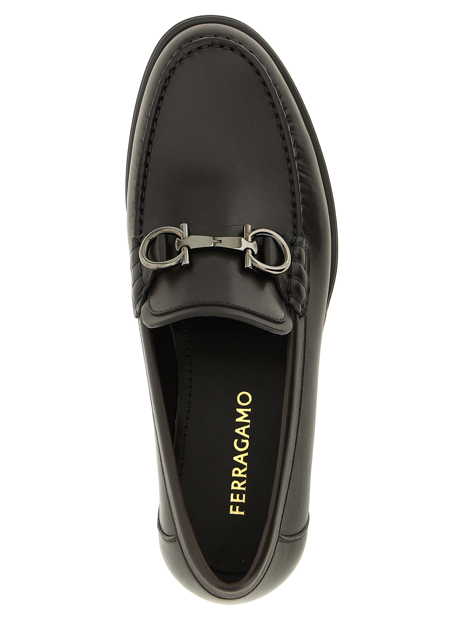 'Teatro' smooth leather loafers with front metal 'Gancini' detail, leather sole.