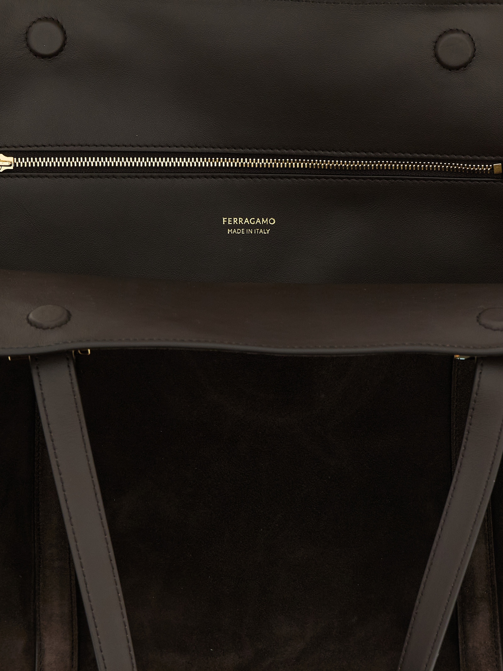 'Scarf L' shoulder bag in suede and calf leather, folded side corners, double fixed handle with metal details, front embossed logo.Характеристики товара