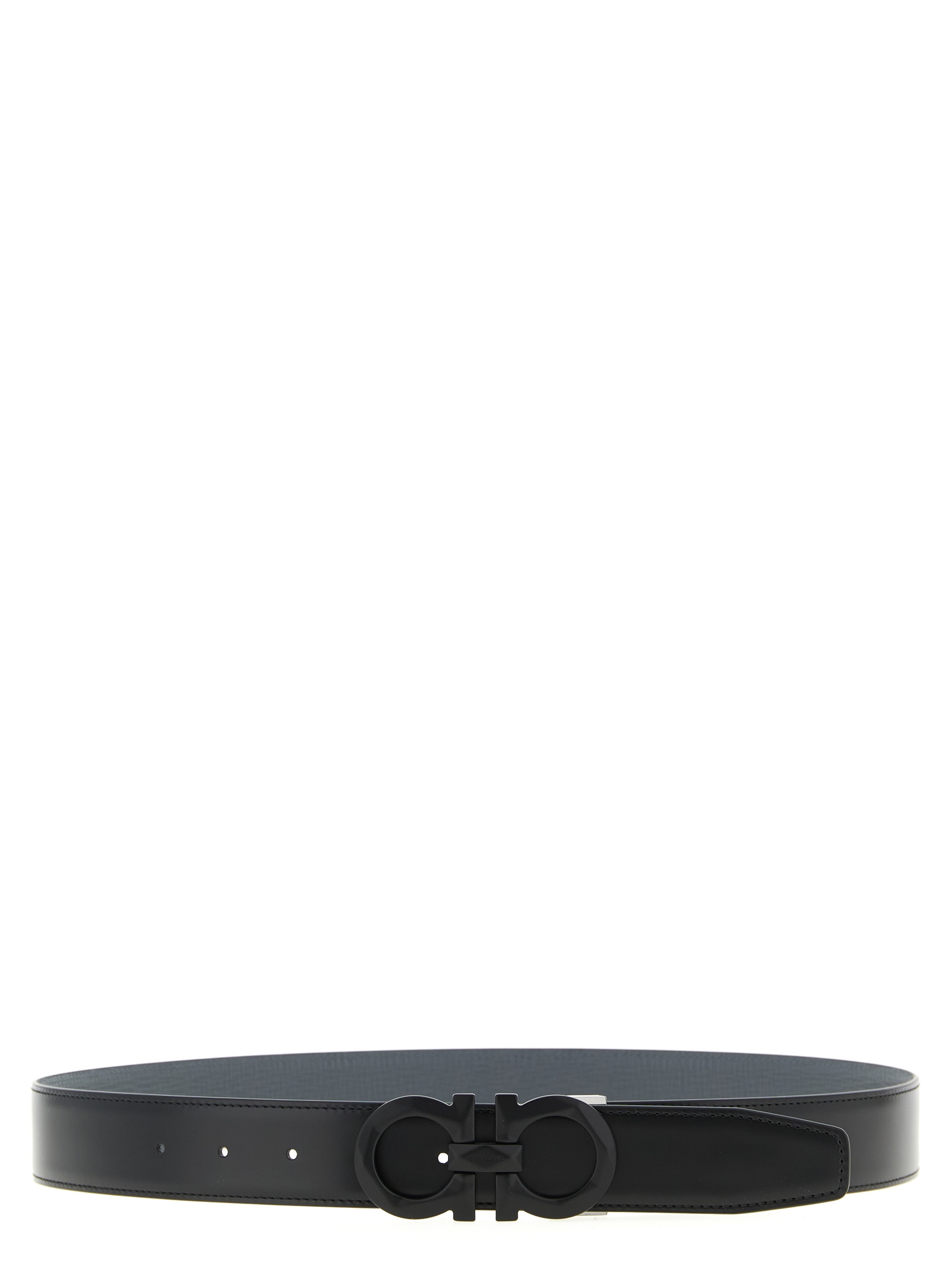 Grey and black hammered leather reversible belt with mat effect 'Gancini' buckle.