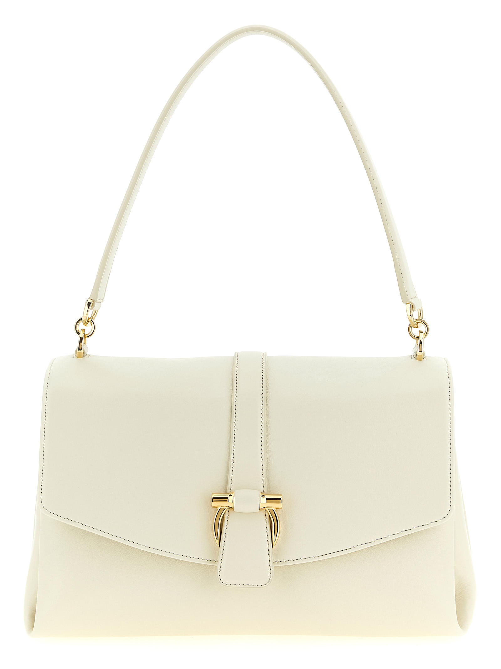 'TH (M)' shoulder bag in calf leather, magnetic flap closure with front 'Gancini' detail, side gussets, fixed handle, adjustable and removable shoulder strap.