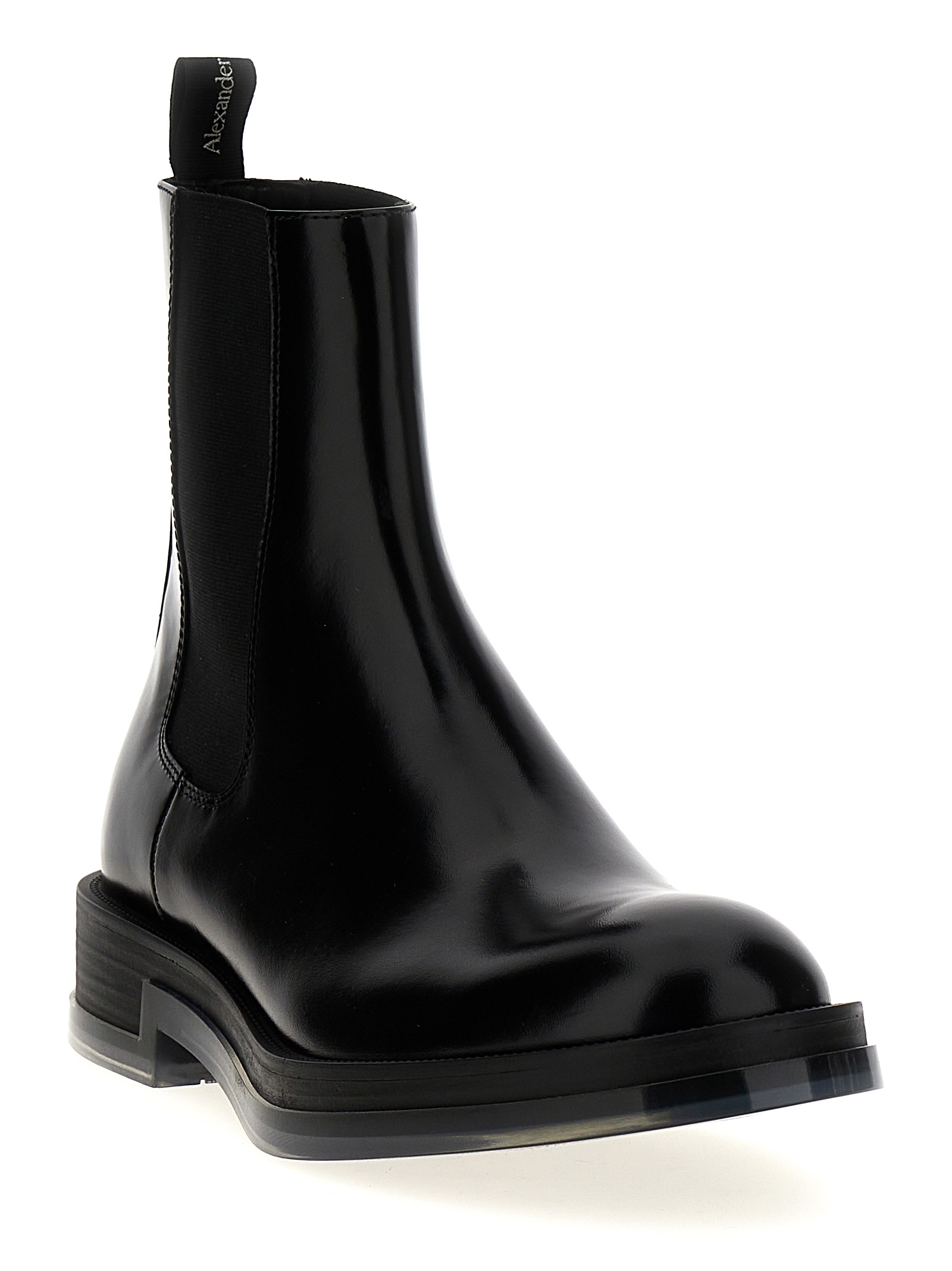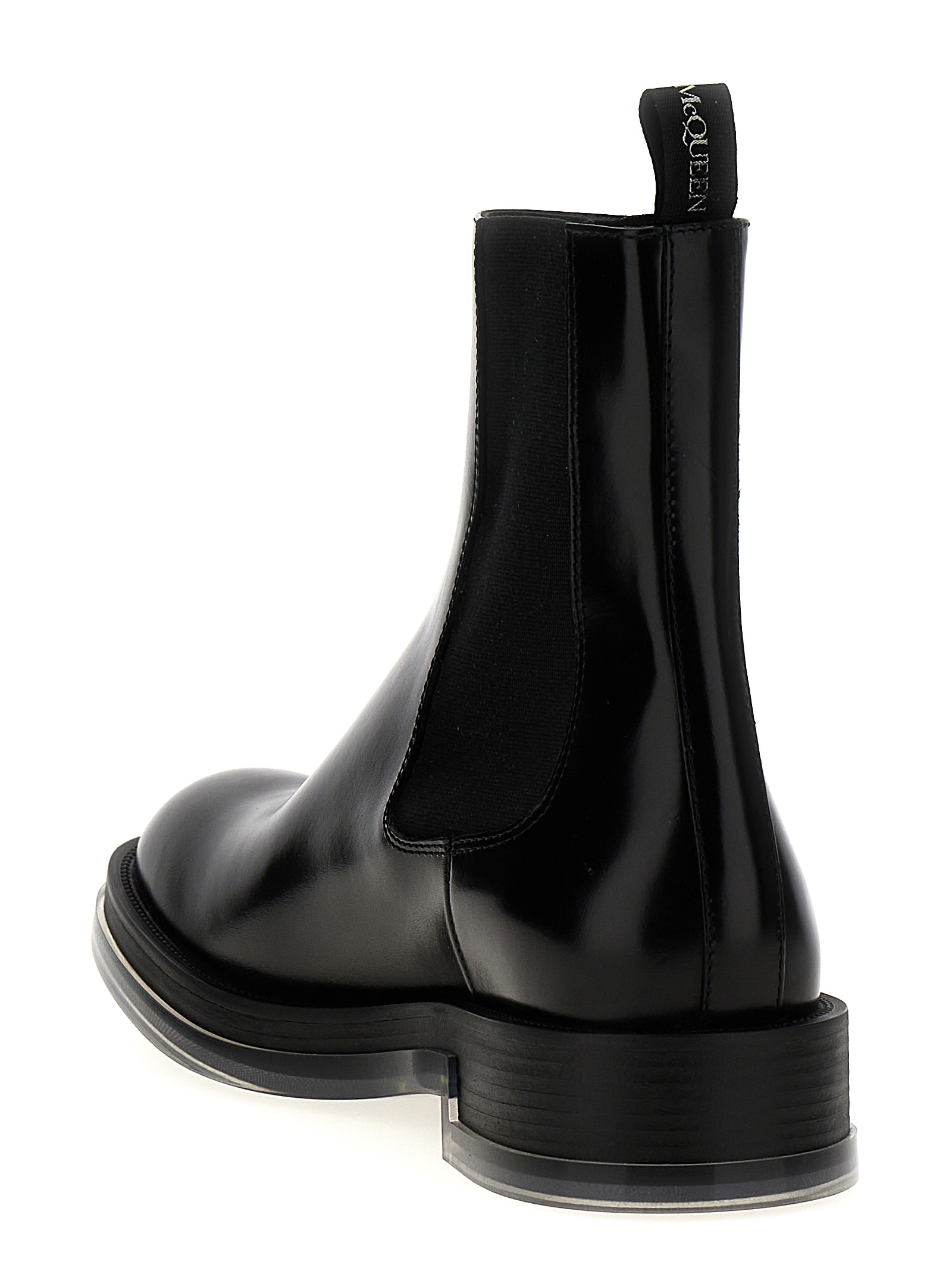 'Float' smooth leather Chelsea boots with elastic ankle straps, transparent sole.