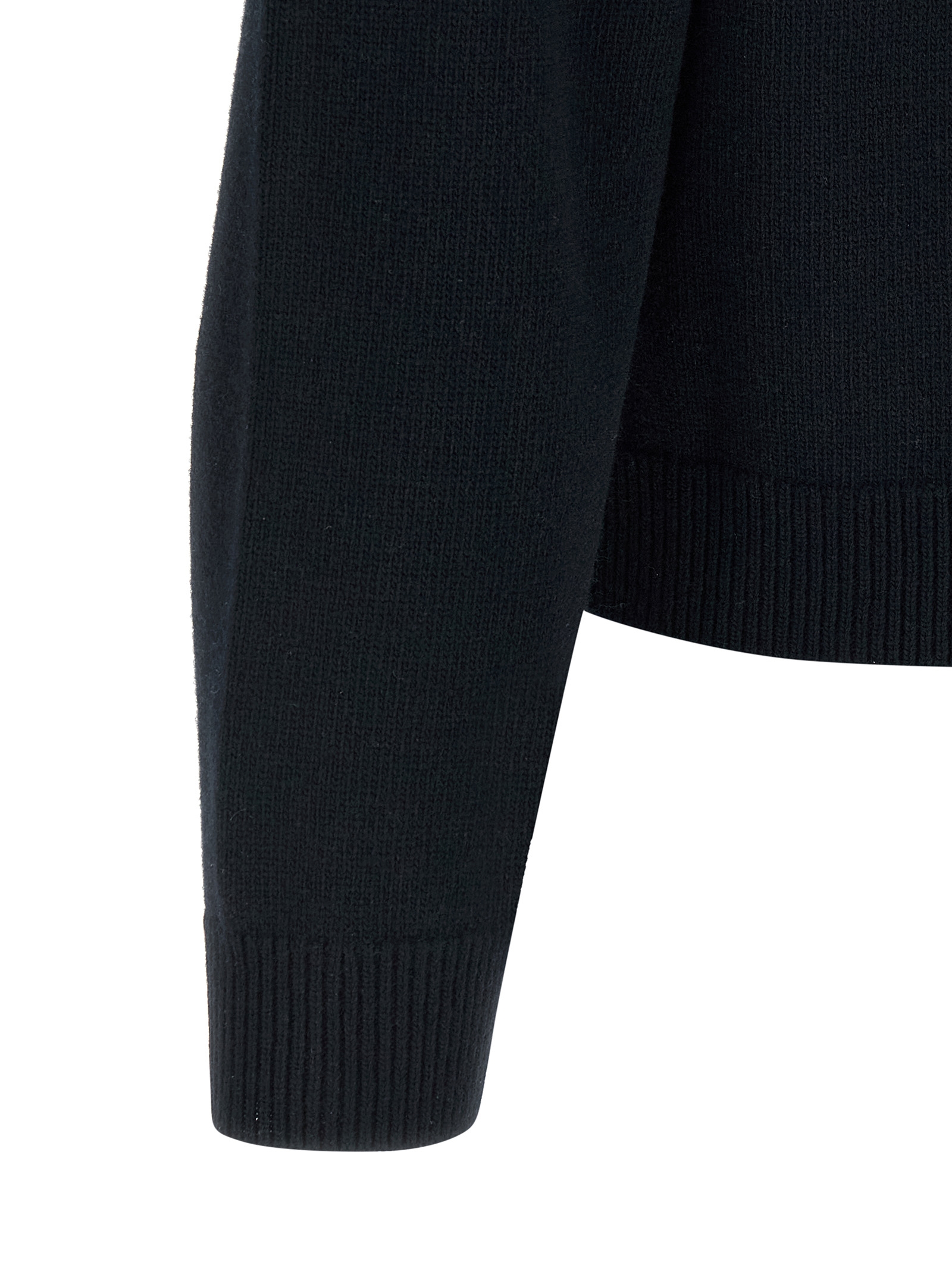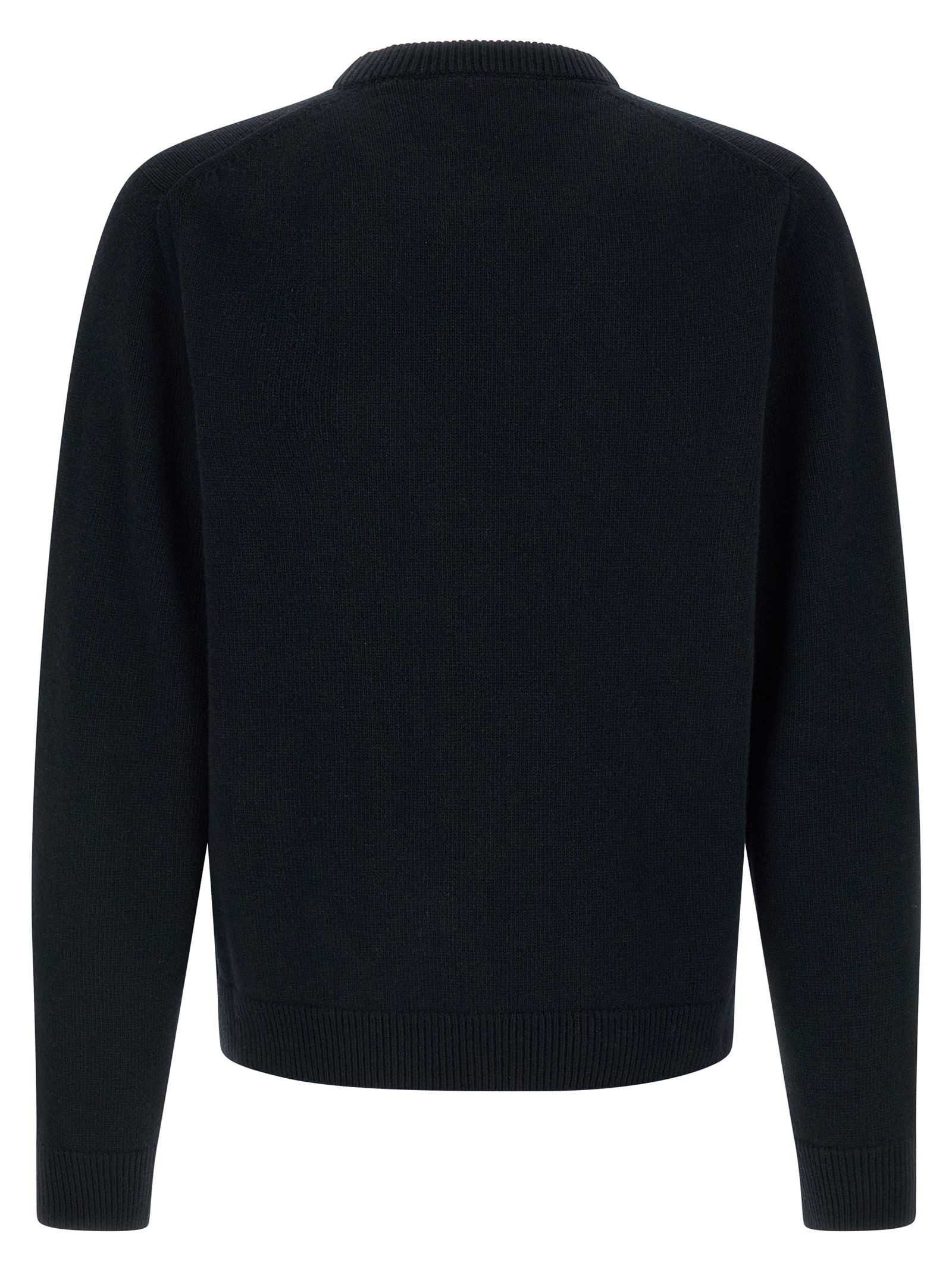 Knitted wool sweater with contrast Gucci logo intarsia on the front, crew neck, long sleeves with cuffs and dropped shoulders, and band on the hem.