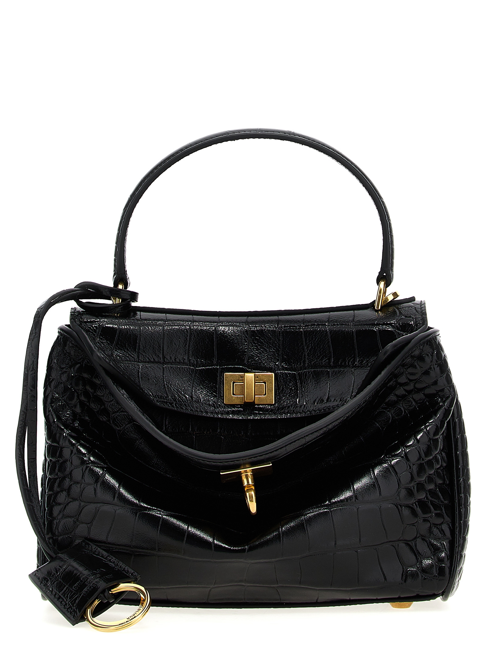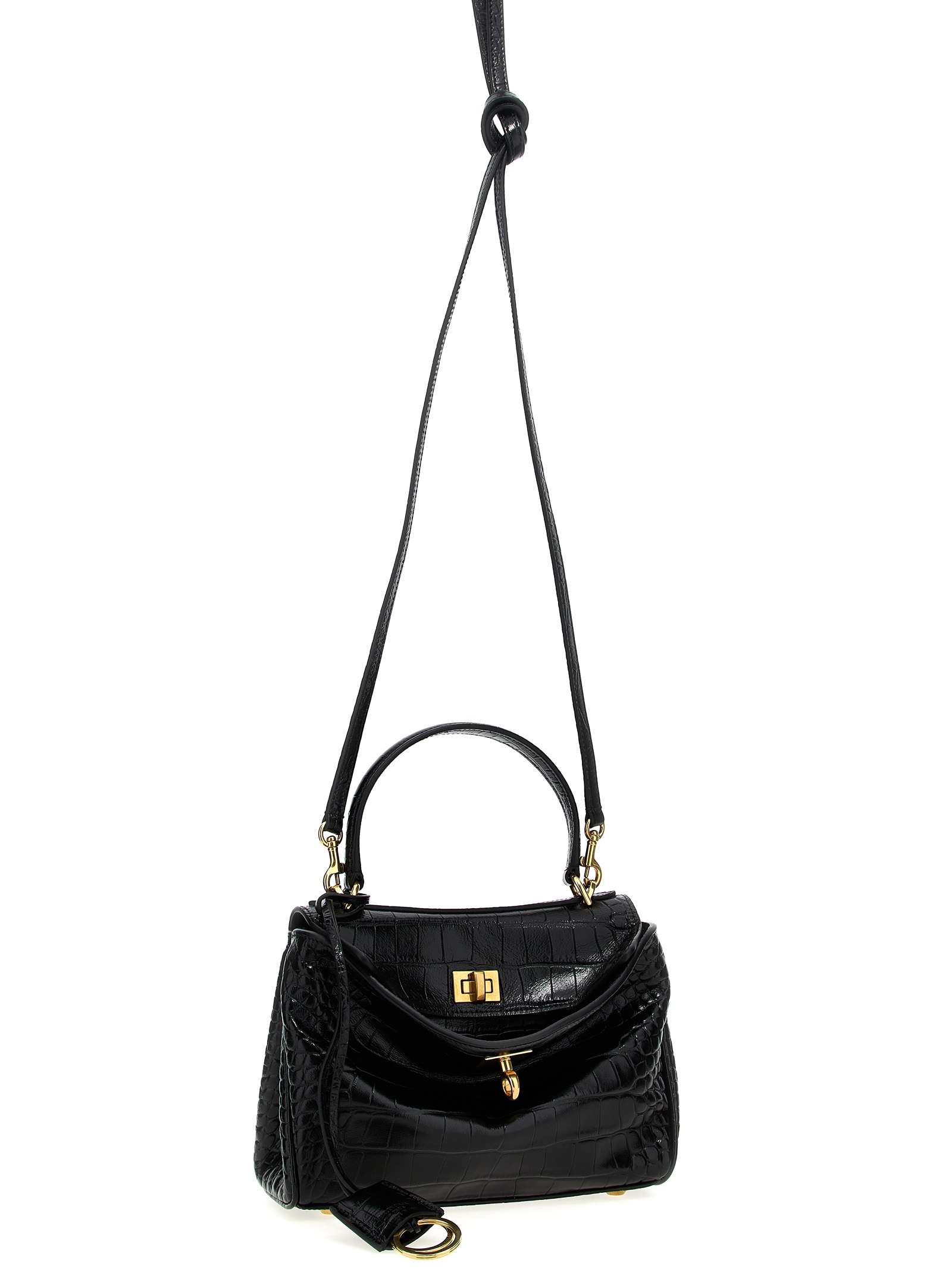 'Rodeo' mini leather handbag with crocodile pattern, fixed handle, metal swivel closure, adjustable and removable shoulder strap, removable key ring.Характеристики товара