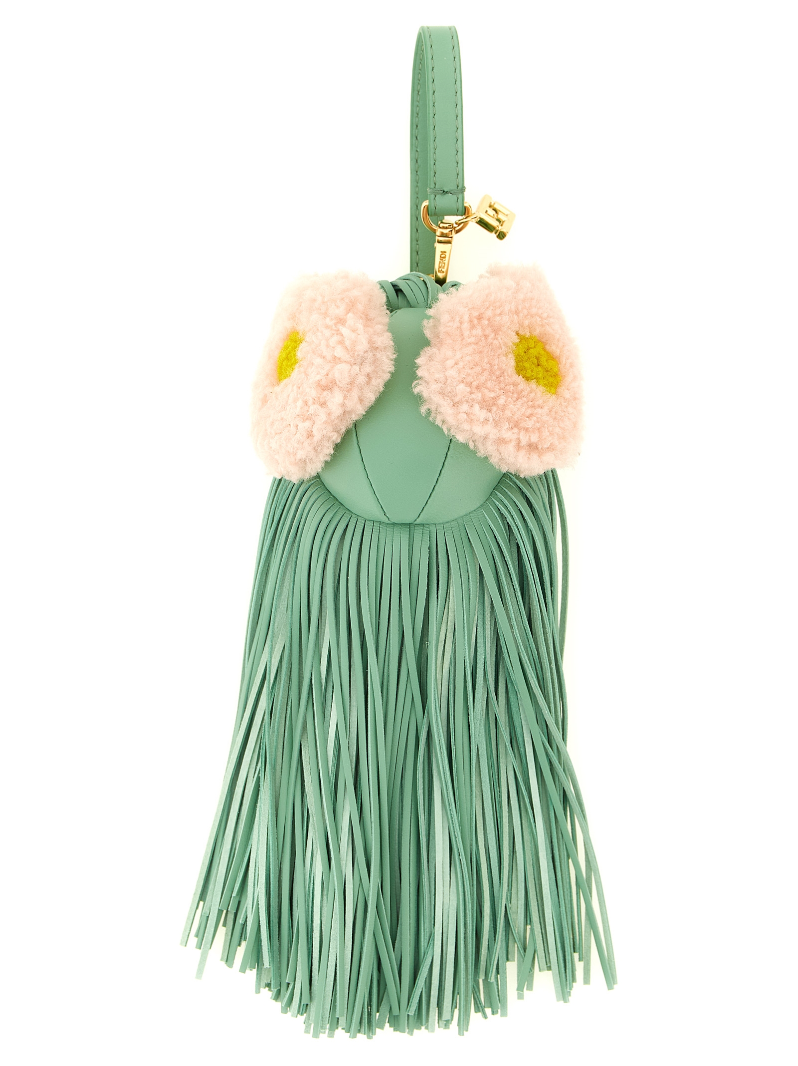 Nappa 'Bag Bugs' charm with tone-on-tone long nappa fringes and front sheepskin details, snap hook and tag with engraved FF logo.