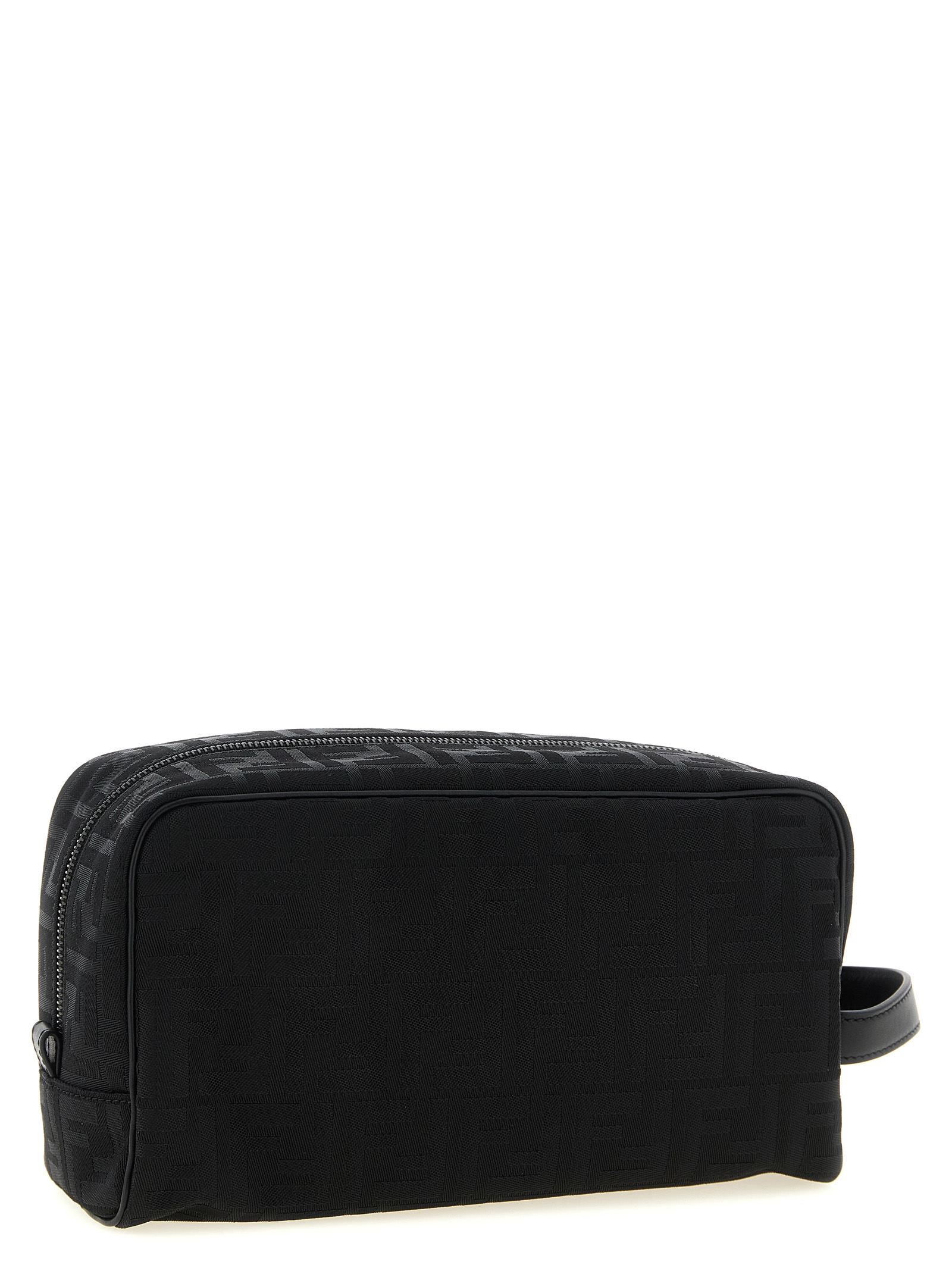 Medium beauty in padded FF Nylon and tone-on-tone smooth leather, top zip closure, handle, washable fabric lining.
