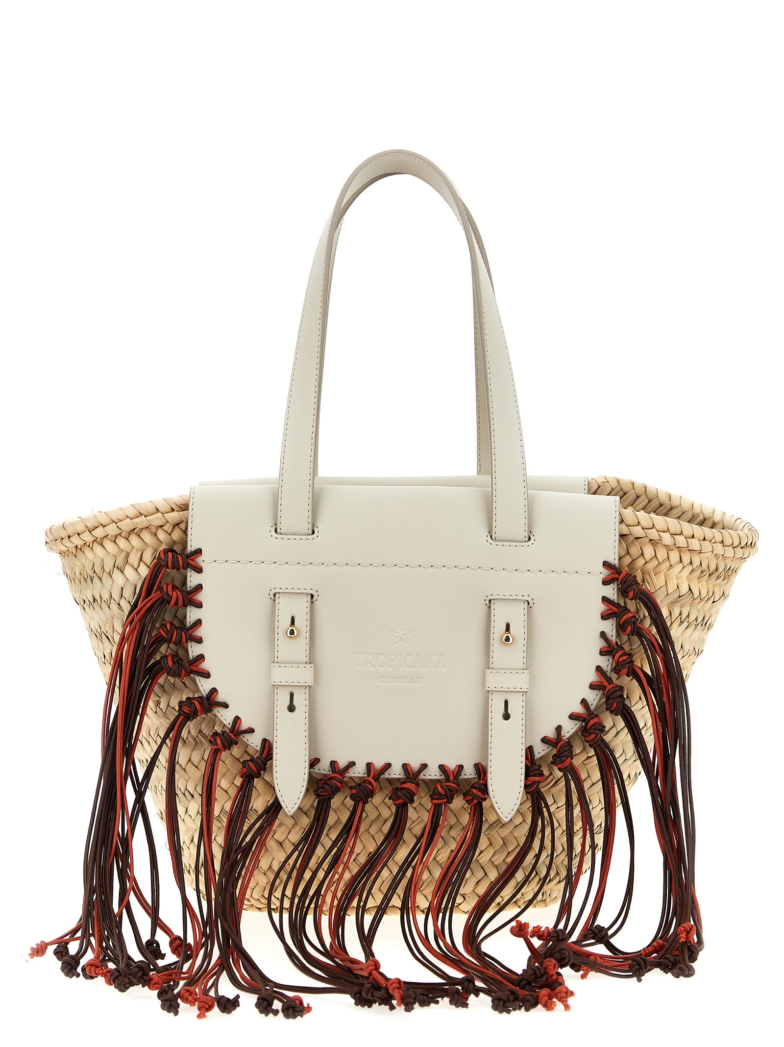 Cuba Lab x SanPa 'Tropicana' shopping bag in straw and leather with fringes, double adjustable handle, removable matching inner clutch. Handcrafted product, any imperfections are to be considered characteristics of uniqueness.