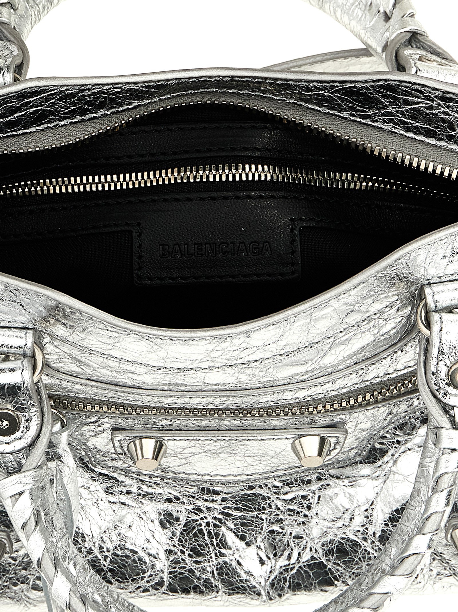 Arena metallic 'Le City Mini' lambskin handbag with double handle, zip closure, stud application, removable shoulder strap.